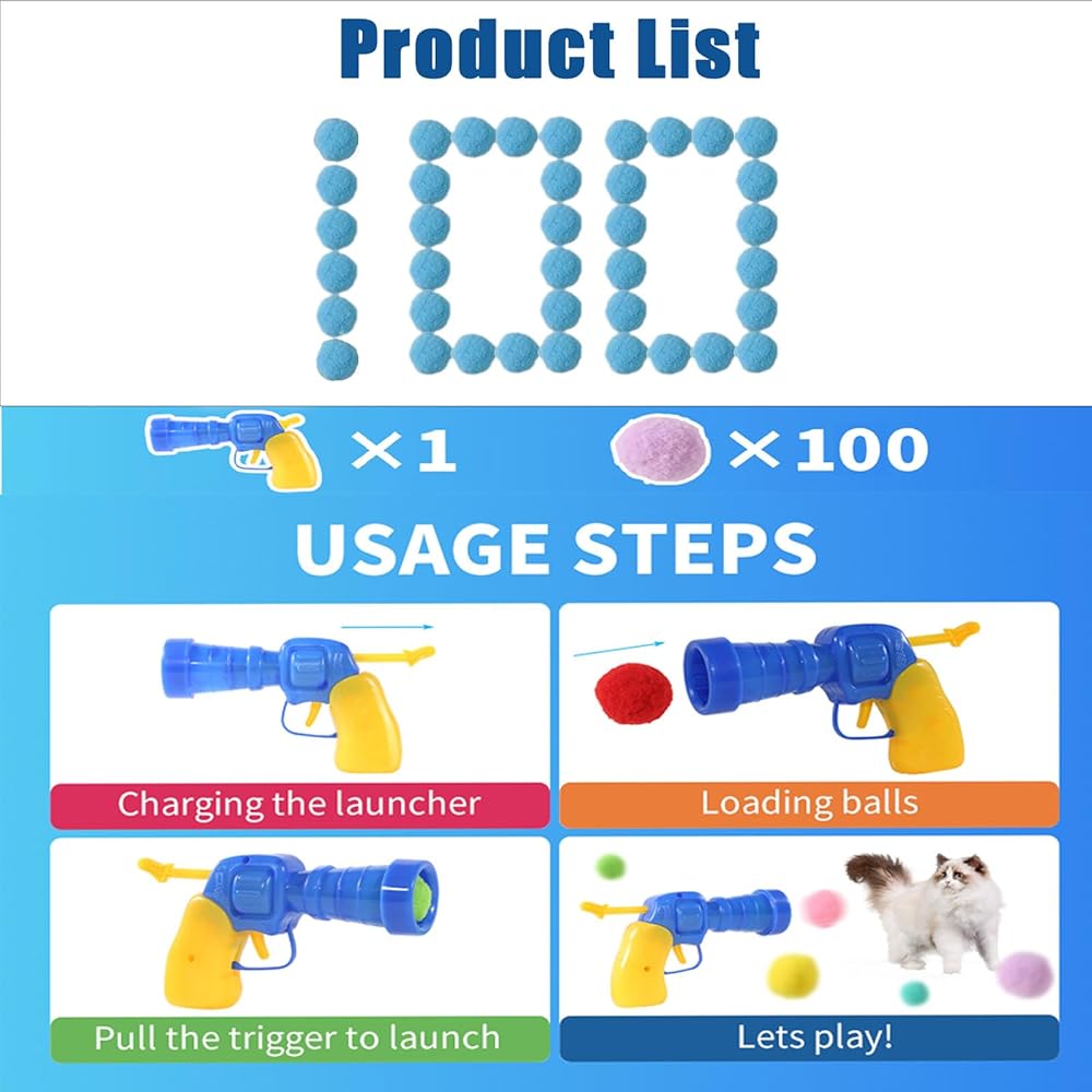 لعبة القط القطيفة الكرات قاذفة بندقية القط جلب لعبة بندقية مطلق النار الحيوانات الأليفة اللعب أفخم الكرة بندقية الرماية مع 100 قطعة كرات بوم بوم التفاعلية للقطط الداخلية القطط النشطة ممارسة اللعب التدريب اللعب