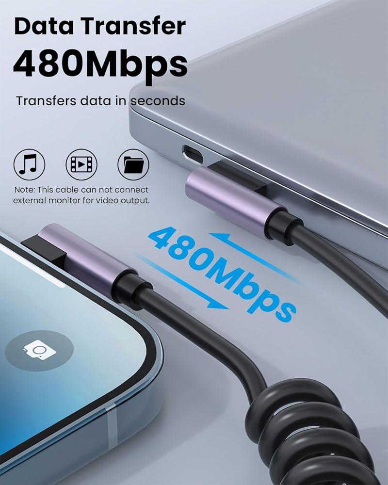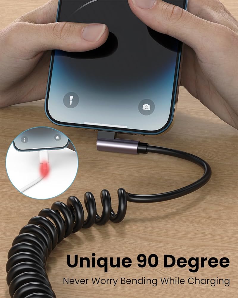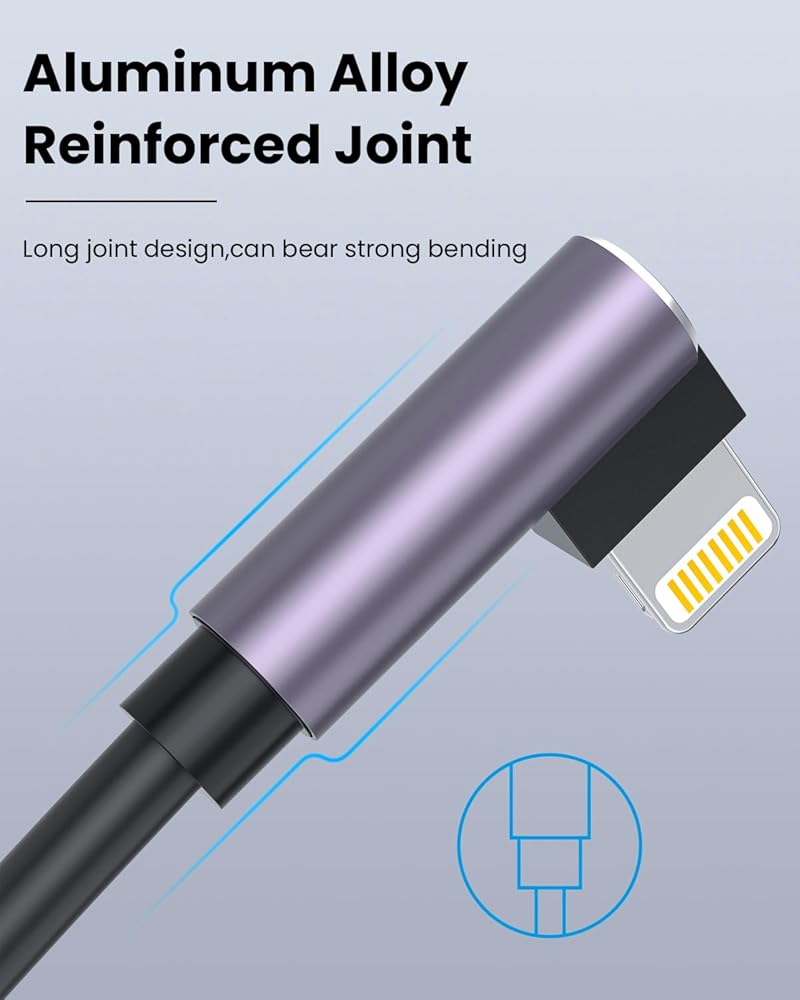 كابل لايتنينج ملفوف 90 درجة، عبوتان، 3 أقدام، سلك شاحن iPhone قصير بزاوية يمين [معتمد من MFi] كابل USB A إلى Lightning Apple CarPlay متوافق مع iPhone 14/13/12/11 Pro Max XS XR X - Lilas