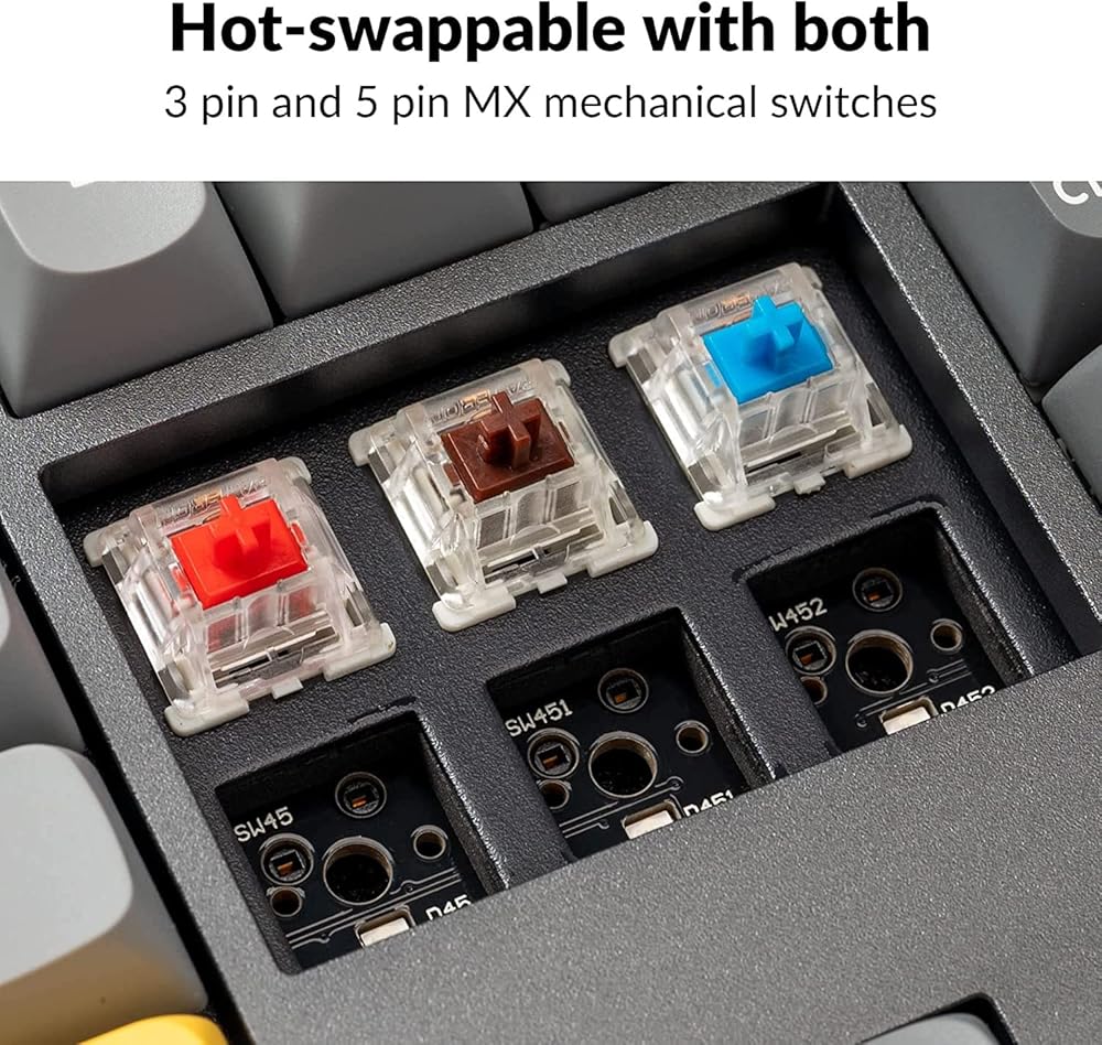 • قابلة للتبديل السريع - تتوافق المقابس القابلة للتبديل السريع مع جميع المفاتيح الميكانيكية ذات الطراز MX و3pin و5pin الموجودة في السوق تقريبًا (بما في ذلك Gateron وCherry وKailh وما إلى ذلك). ، يمكنك تبديل إصدار Q5 Barebone Knob بدون لحام. أصبحت تجربة الكتابة بالمفاتيح الكبيرة (مفتاح المسافة، والتحويل، والإدخال، والحذف) أكثر استقرارًا وسلاسة الآن مع مثبتات PCB الجديدة الملولبة.