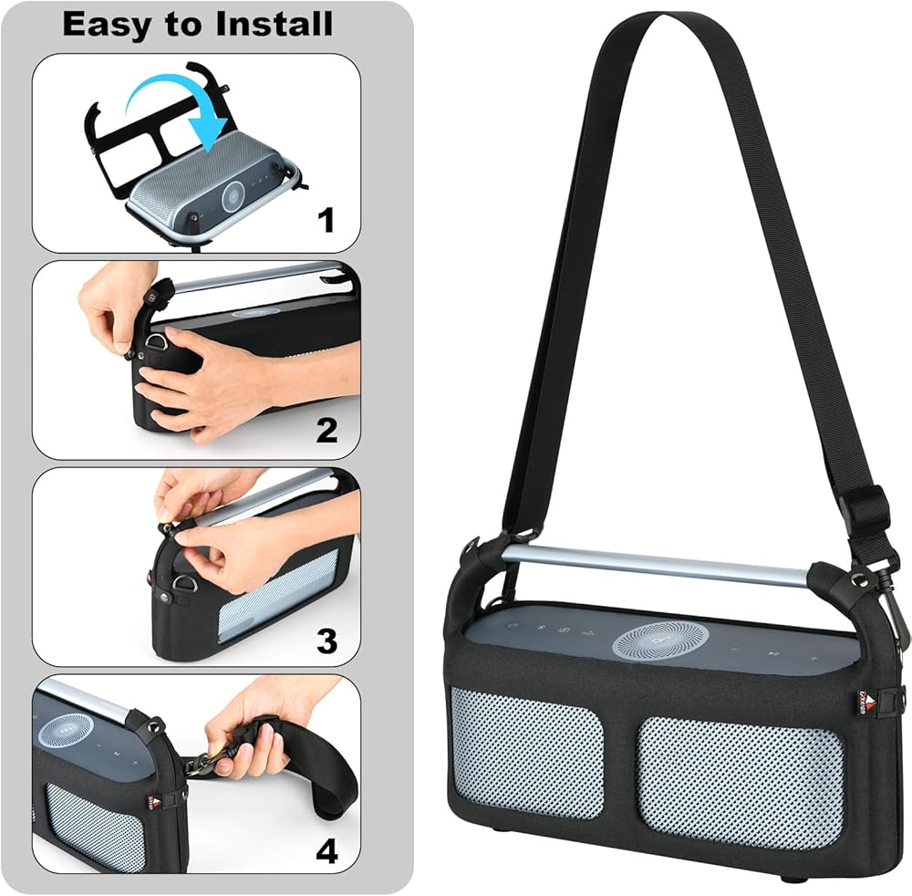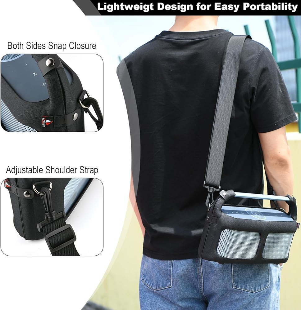 2. Features a shoulder strap, adjust the length according to your needs, easily carry the speaker on the go.