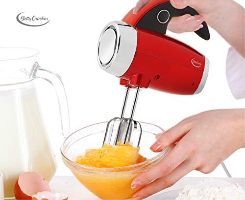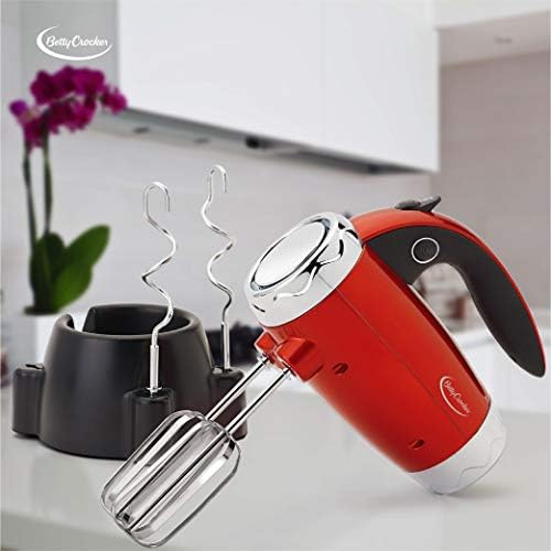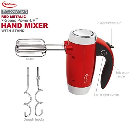 الحامل والملحقات المتضمنة - يشتمل الخلاط اليدوي من بيتي كروكر على حامل تخزين ومجموعتين من الملحقات؛ مضارب الأسلاك وخطافات العجين. هذه الملحقات ذات الطراز الاحترافي مطلية بالكروم وآمنة للاستخدام في غسالة الأطباق.