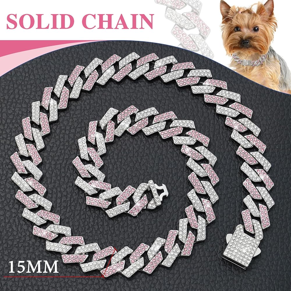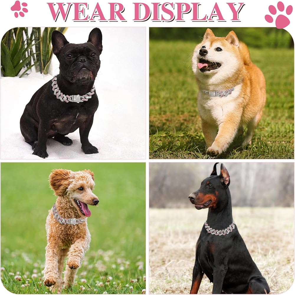• 【قلادة طوق ربط كوبي】: مادة سبيكة عالية الجودة، أحجار الراين 5A، وصلة سلسلة كوبية، مرصعة على طوق الكلب المعدني للحيوانات الأليفة.