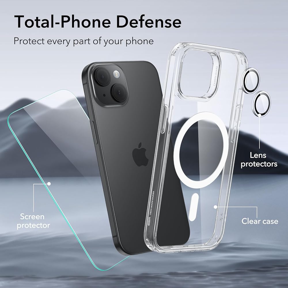 التوافق: فقط لهاتف iPhone 15؛ يشتمل على واقي شاشة من الزجاج المقسى ومجموعة واحدة من واقيات العدسات الفردية، مصممة خصيصًا لهاتف iPhone 15