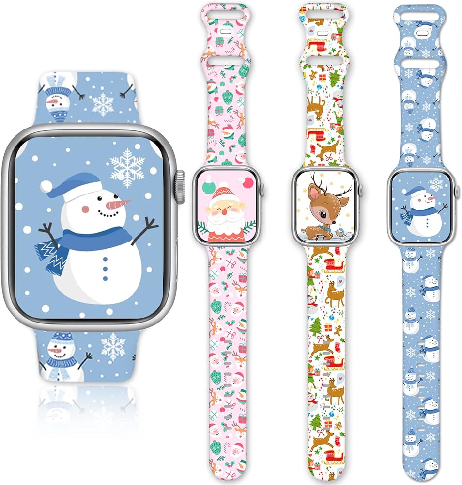 🎄🎄3 Pack Christmas Watch Bands: Special Christmas holiday apple watch bands. Light Romance wristwatch band for girls women. Snowman snowflakes & cute Santa, Reindeer patterns design patterns of sports replacement wristband are a special gift for Christmas. The unique Christmas design makes your sport watch more eye-catching and the center of attention at the party of Christmas.