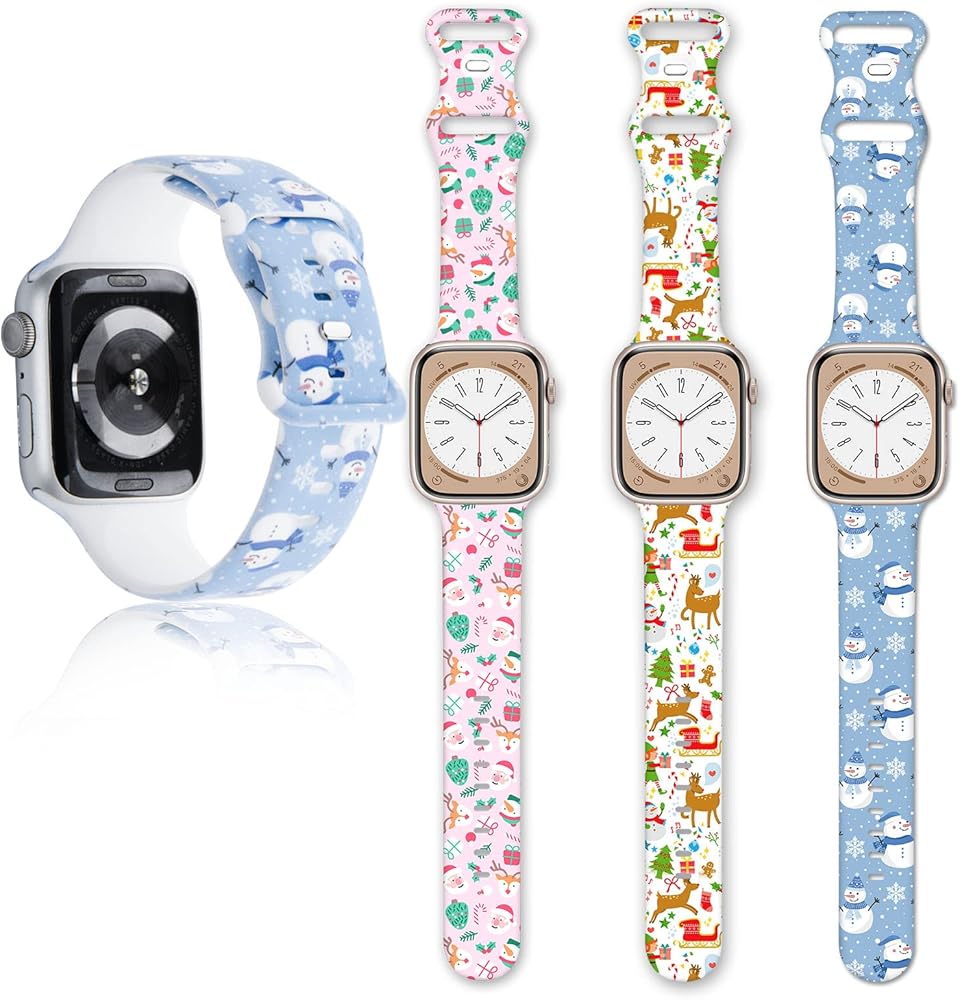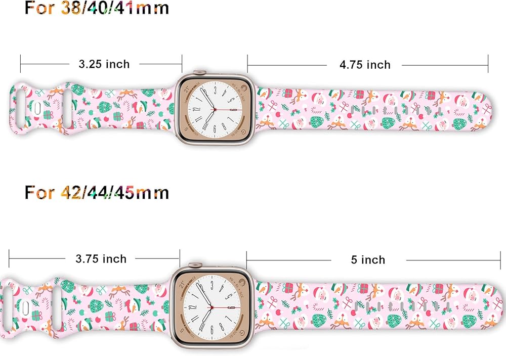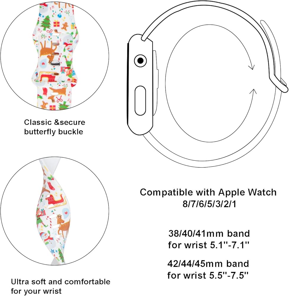 🎄🎄Compatibility: Christmas pattern printed watch bands are suitable for iWatch SE & Series9, 8, 7, Series 6, Series 5, Series 4, Series 3, Series 2, Series 1, edition. Works with all versions of apple watch.