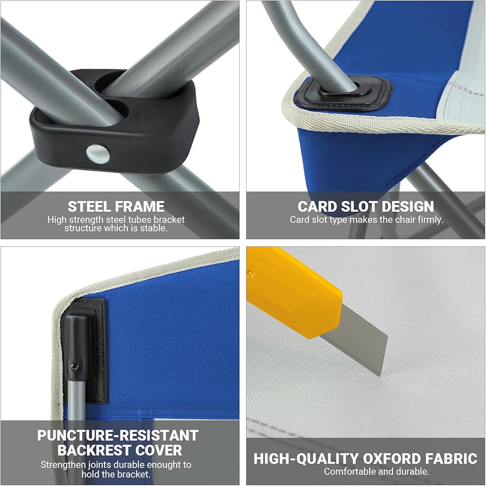 【متين ومستقر】نسيج أكسفورد 600D وإطار فولاذي مطلي بالطاقة يجعل الكرسي القابل للطي متينًا ومستقرًا للغاية، ويمكنه دعم ما يصل إلى 120 كجم / 265 رطلاً.