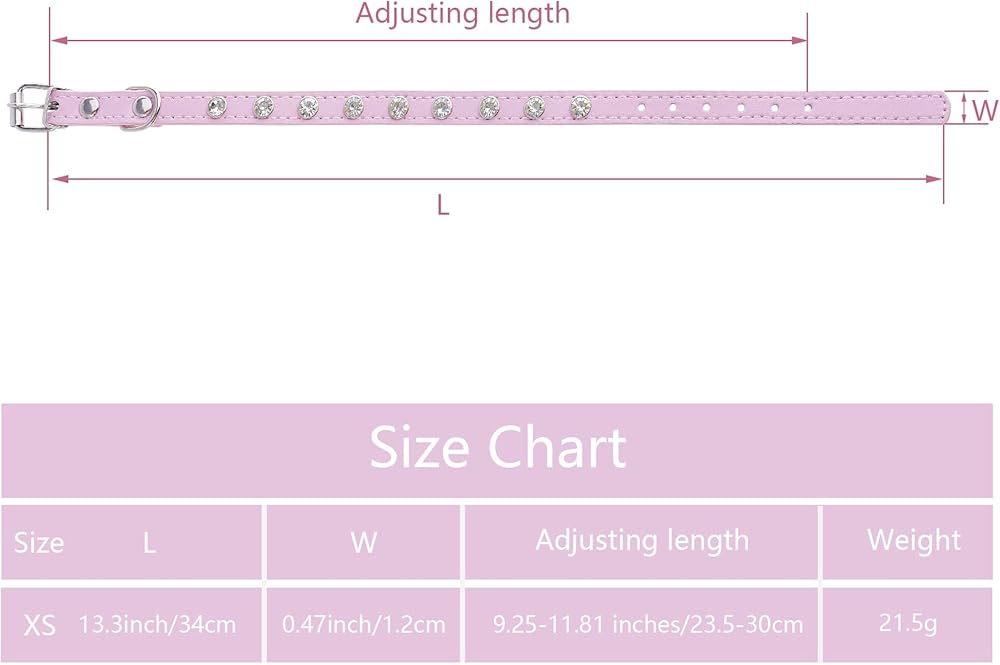 مصنوع للحيوانات الأليفة الصغيرة: XS للطول القابل للتعديل حوالي 9.25-11.81 بوصة/23.5-30 سم، العرض: 0.47 بوصة/1.2 سم، الطول: 13.3 بوصة/34 سم. أطواق الكلاب الأليفة المصنوعة من أحجار الراين الوردية هذه مناسبة لمعظم الكلاب الصغيرة والصغيرة جدًا. يرجى قياس محيط رقبة الحيوان الأليف بعناية للتأكد من أنه مناسب لحيوانك الأليف.