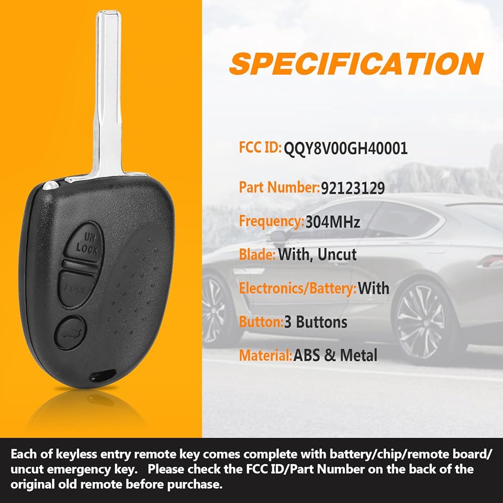 Yewong مفتاح التحكم عن بعد فوب لبونتياك GTO 2004-2006 لسيارة شيفروليه كابريس لومينا 1998-2006 QQY8V00GH40001 92123129 304MHz 3 أزرار