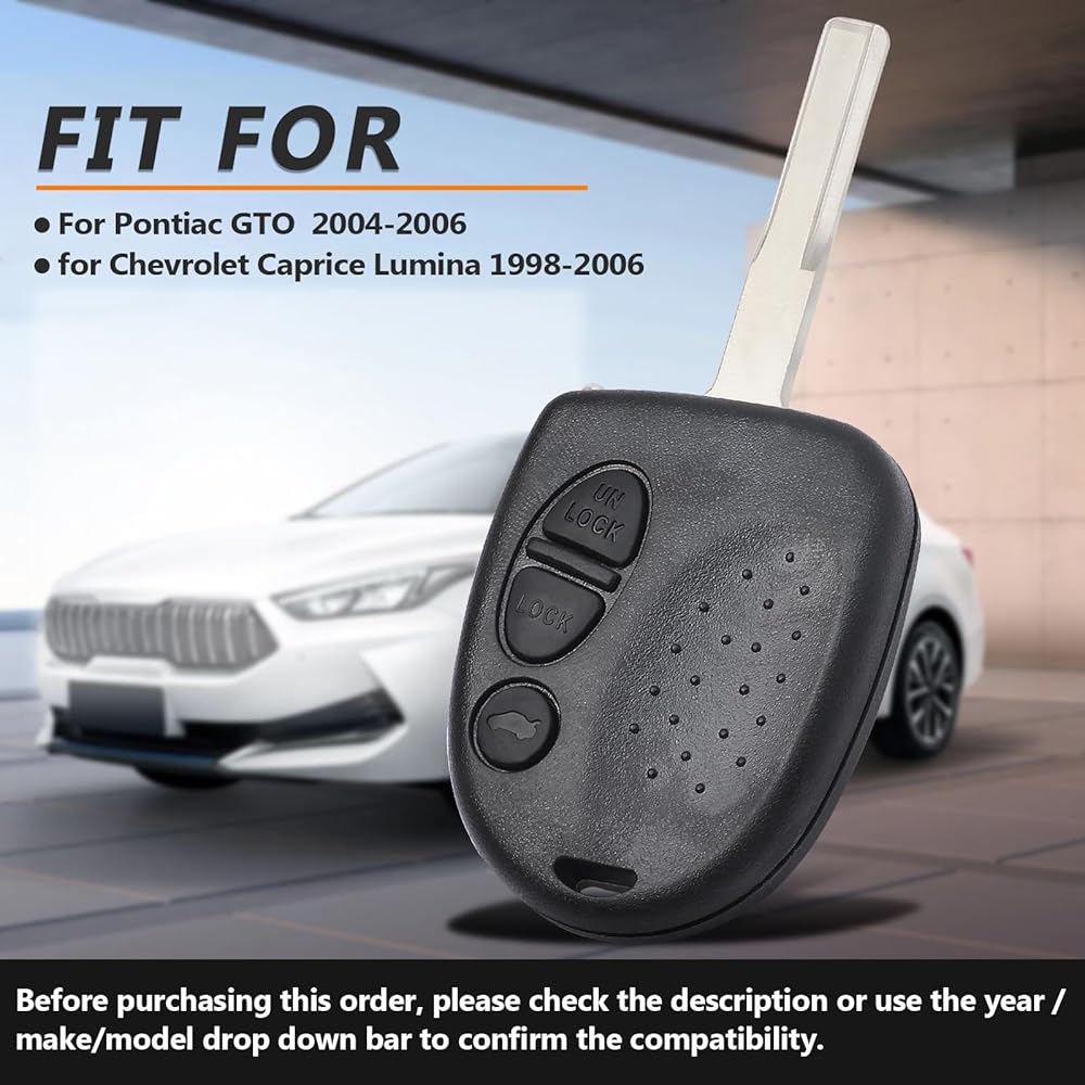 • التوافق: يناسب بونتياك جي تي أو 2004-2006، لسيارة شيفروليه كابريس لومينا 1998-2006. يرجى التحقق من الوصف أو استخدام السنة/الطراز/الطراز لتأكيد التوافق، والتأكد من أن مفتاحك هو نفسه تمامًا مثل مفاتيحنا (نفس الشكل والأزرار)