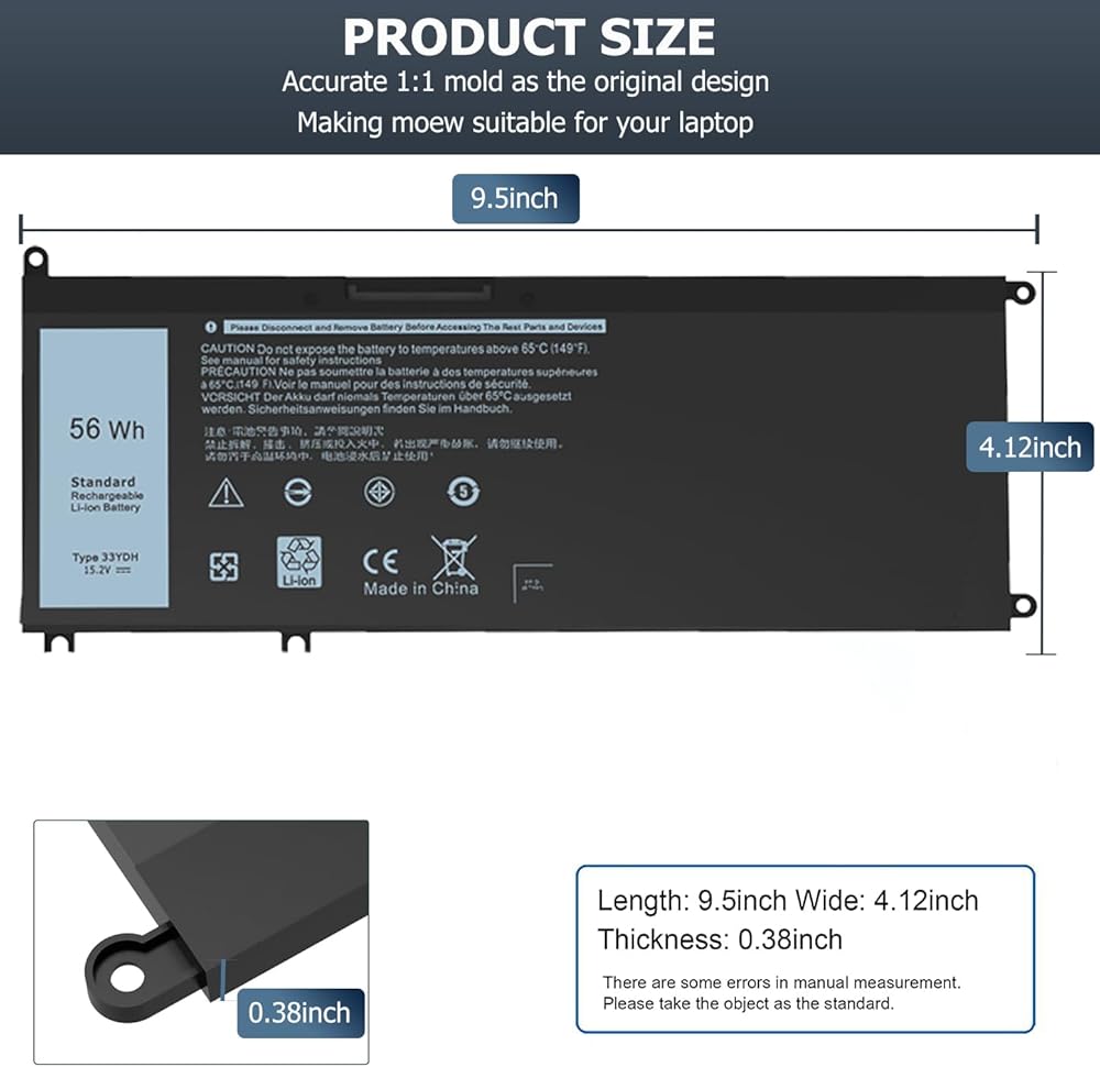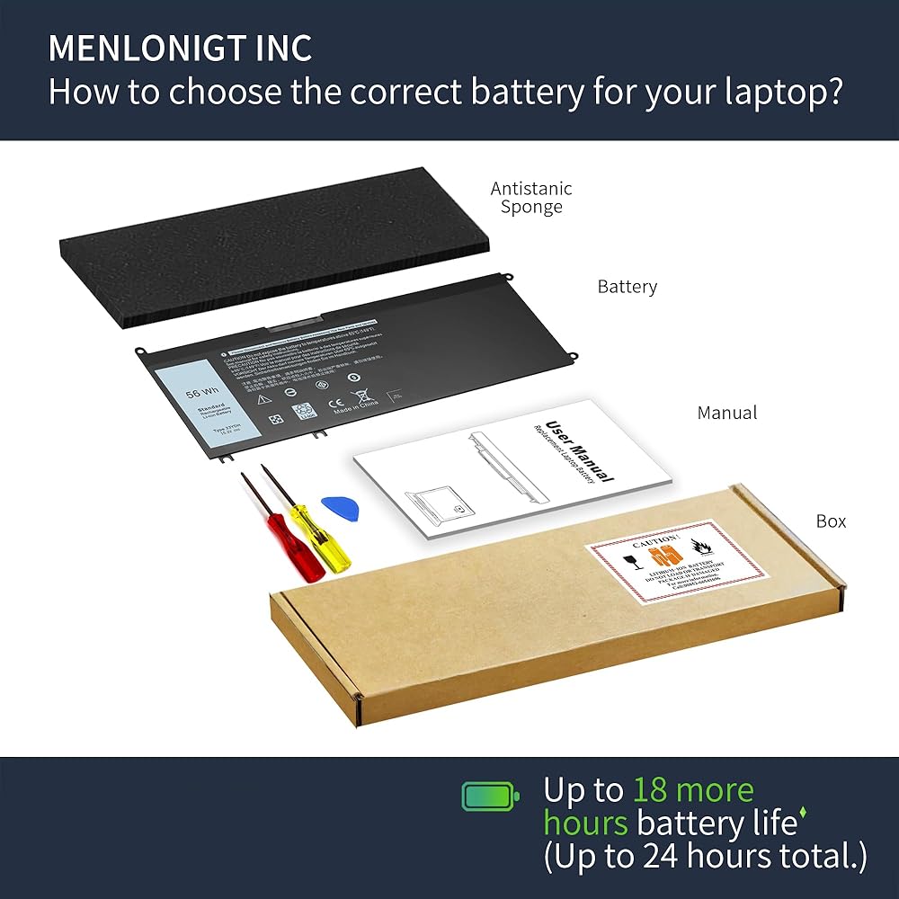 المواصفات: الطراز: WDXOR؛ نوع البطارية: ليثيوم أيون، السعة: 42 وات في الساعة 3500 مللي أمبير، الجهد الكهربي: 11.4 فولت، الخلايا: 4 خلايا، 100% جديدة تمامًا. أسود مع مفكين مجانيين. (يوجد نوعان مختلفان من البطاريات، WDXOR وYRDD6، يمكنهما العمل مع أجهزة الكمبيوتر المحمول Dell nspiron 15 70007586، يرجى التحقق مرة أخرى من البطارية الأصلية قبل الشراء.)