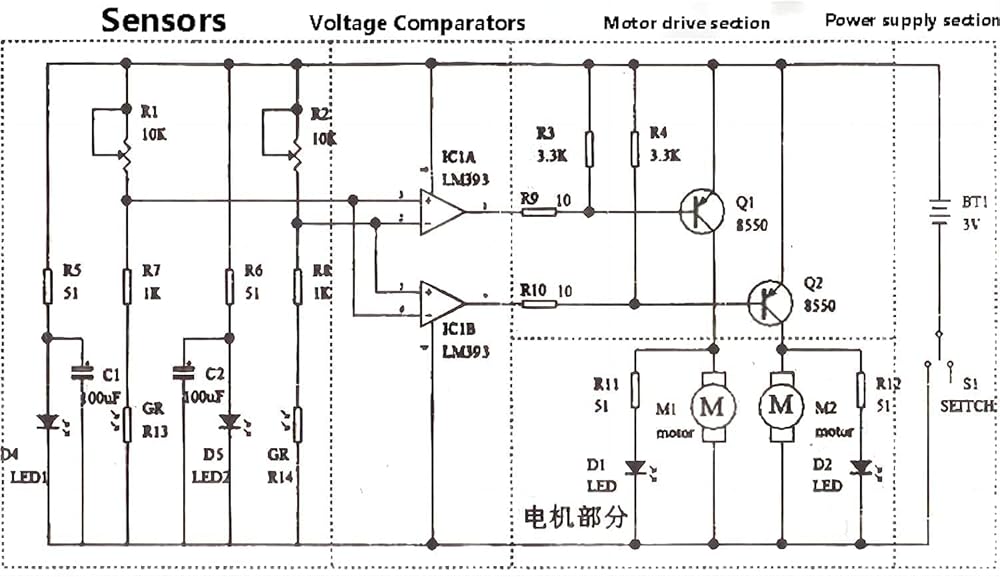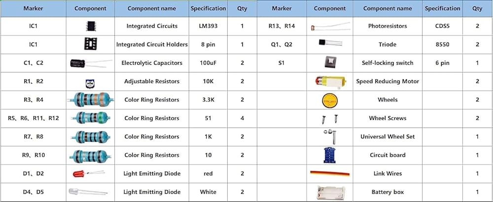 • 🥇 【Working principle】:LM393 is always comparing the size of the two photoresistors, when there is an imbalance (such as one side of the pressure black runway) immediately control one side of the motor to stop, the other side of the motor to accelerate the rotation, so that the car to correct the direction, back to the correct direction, the whole process is a closed-loop control, so it can be fast and sensitive control.