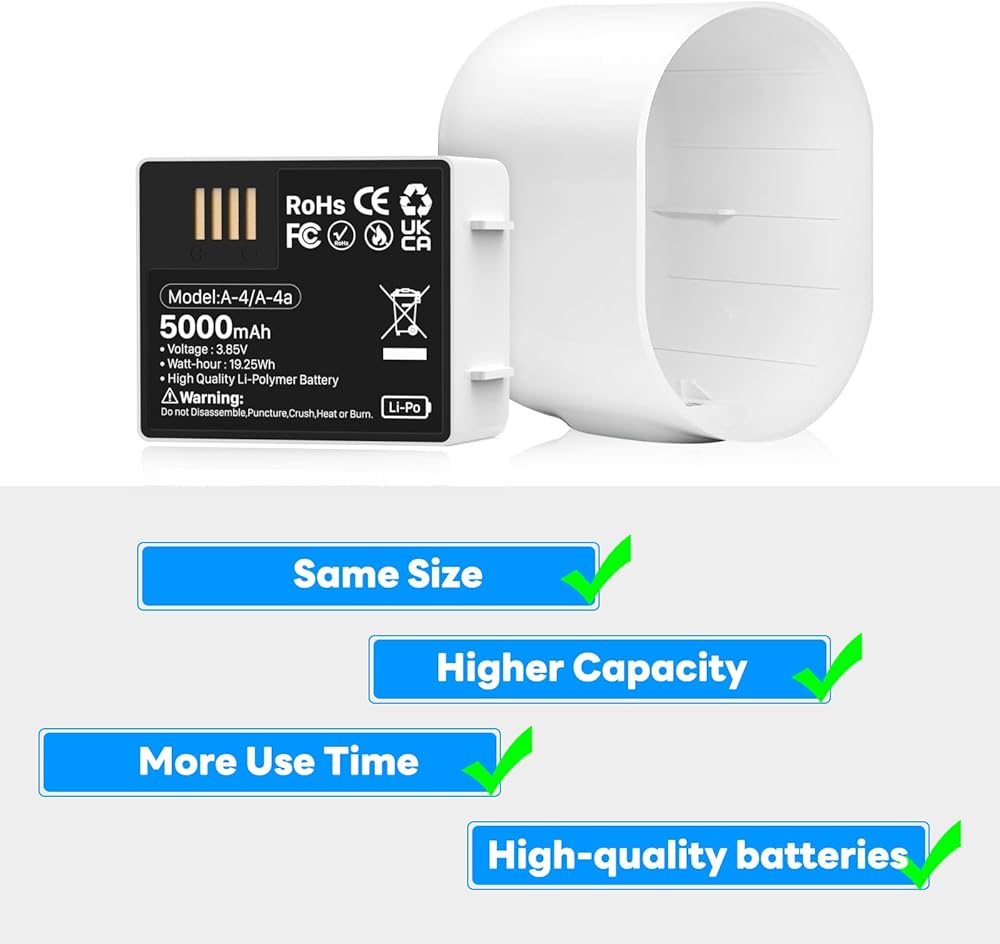 【Updated Products】This is the new 2024 version for Arlo Pro 5/5S 2K/Arlo Pro 3/Pro 4/Ultra/Ultra 2 Camera battery, with a capacity of 5000mAh. Developed and designed for every customer's shopping experience