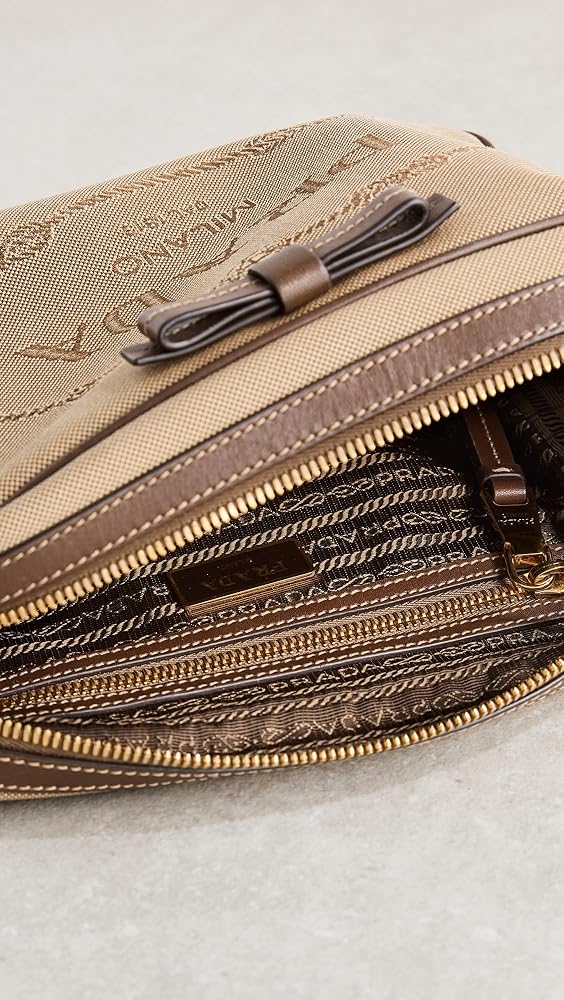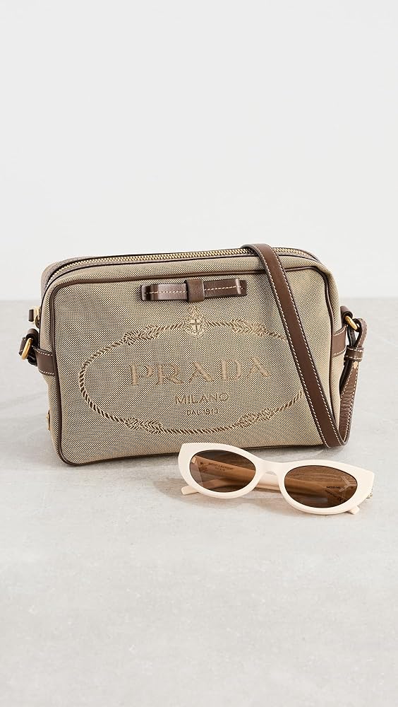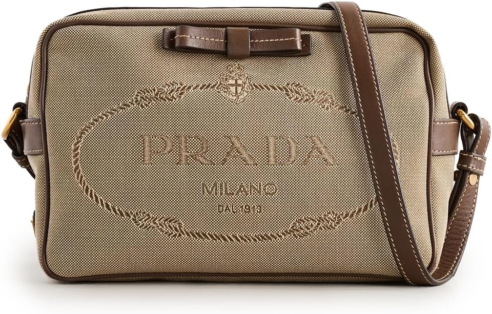 حقيبة كتف برادا للكاميرا من قماش الجاكار المحبوب مسبقًا للسيدات، من القماش