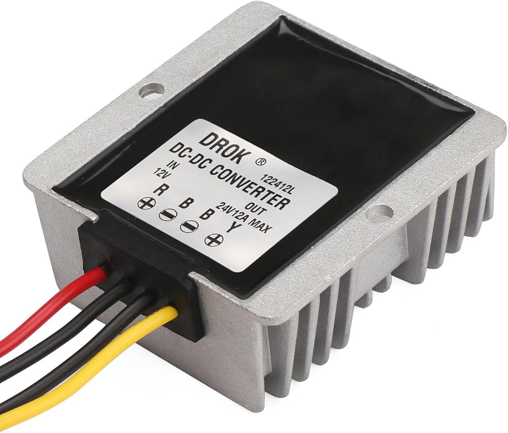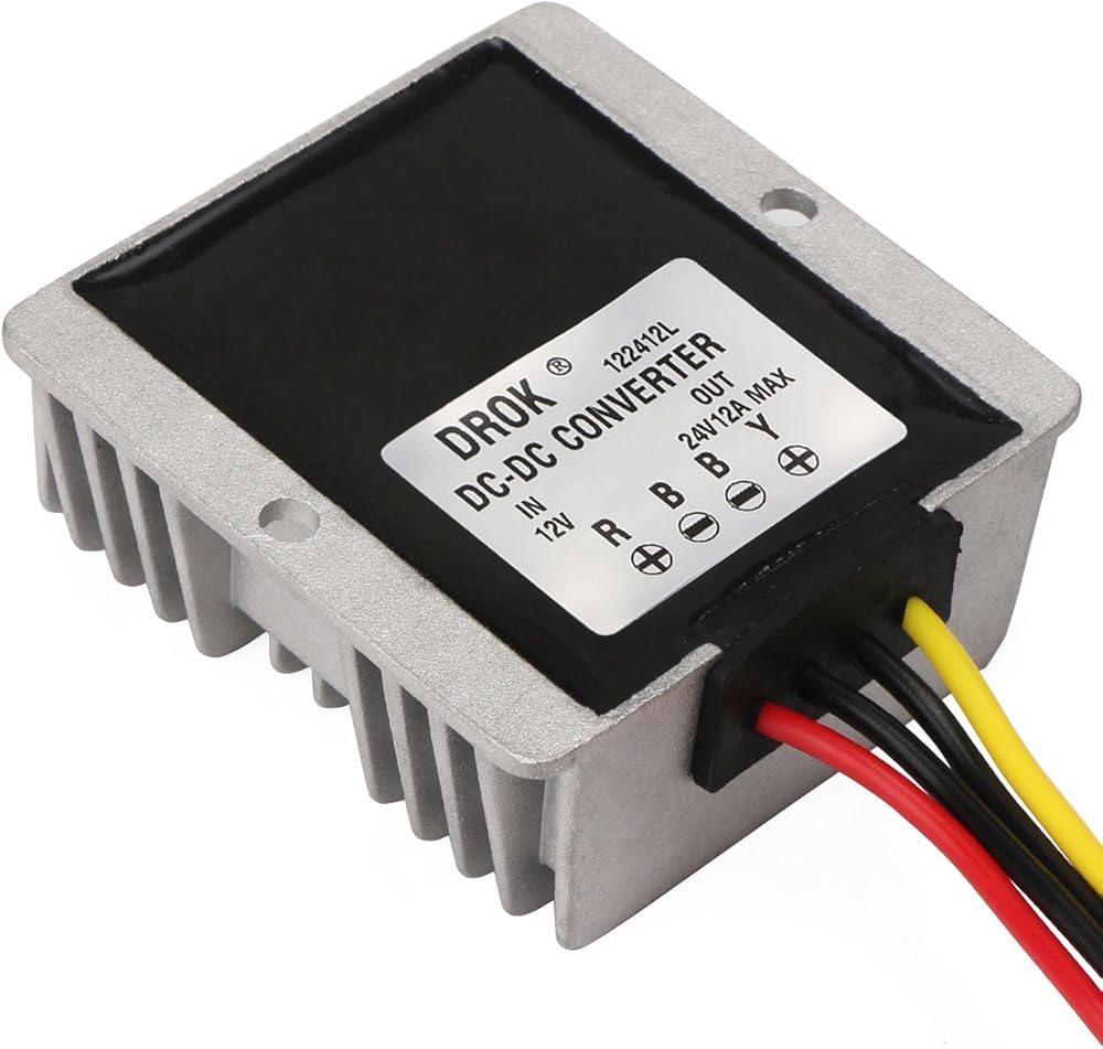DROK® DC-DC محول طاقة مقاوم للماء للسيارة 12 فولت إلى 24 فولت 12 أمبير منظم جهد 288 واط فولت وحدة محول تصعيد للبطارية تلفزيون LCD للطاقة الشمسية