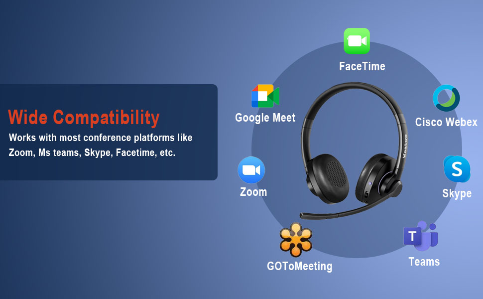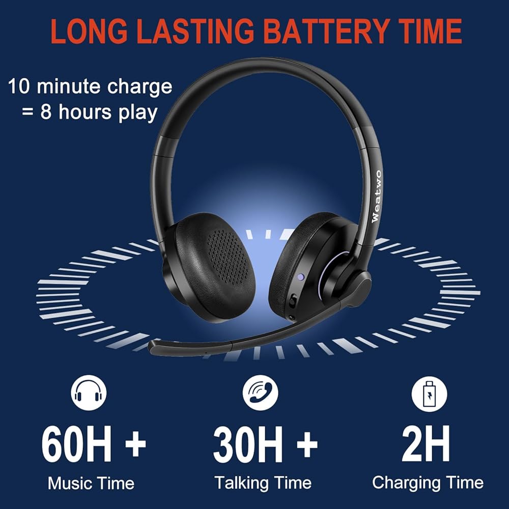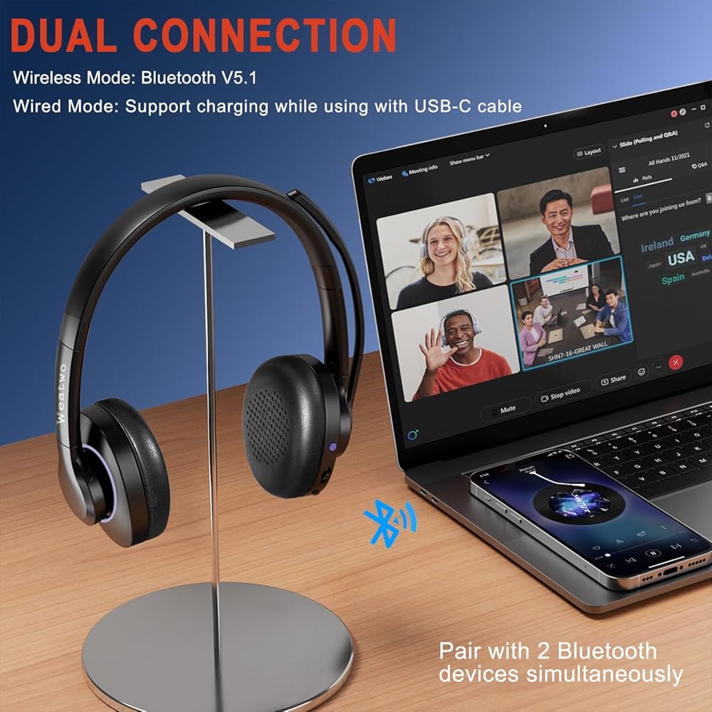 • ☀ اتصال مجاني: يمكن توصيل سماعة الرأس اللاسلكية Weatwo WT200 المزودة بميكروفون بجهازين في نفس الوقت، وهي مناسبة لأجهزة IOS وAndroid وWindows والكمبيوتر المحمول والهاتف الذكي والكمبيوتر اللوحي. يمكن توصيلها بالأجهزة عبر البلوتوث، أو عبر كابل USB C كسماعة رأس سلكية.