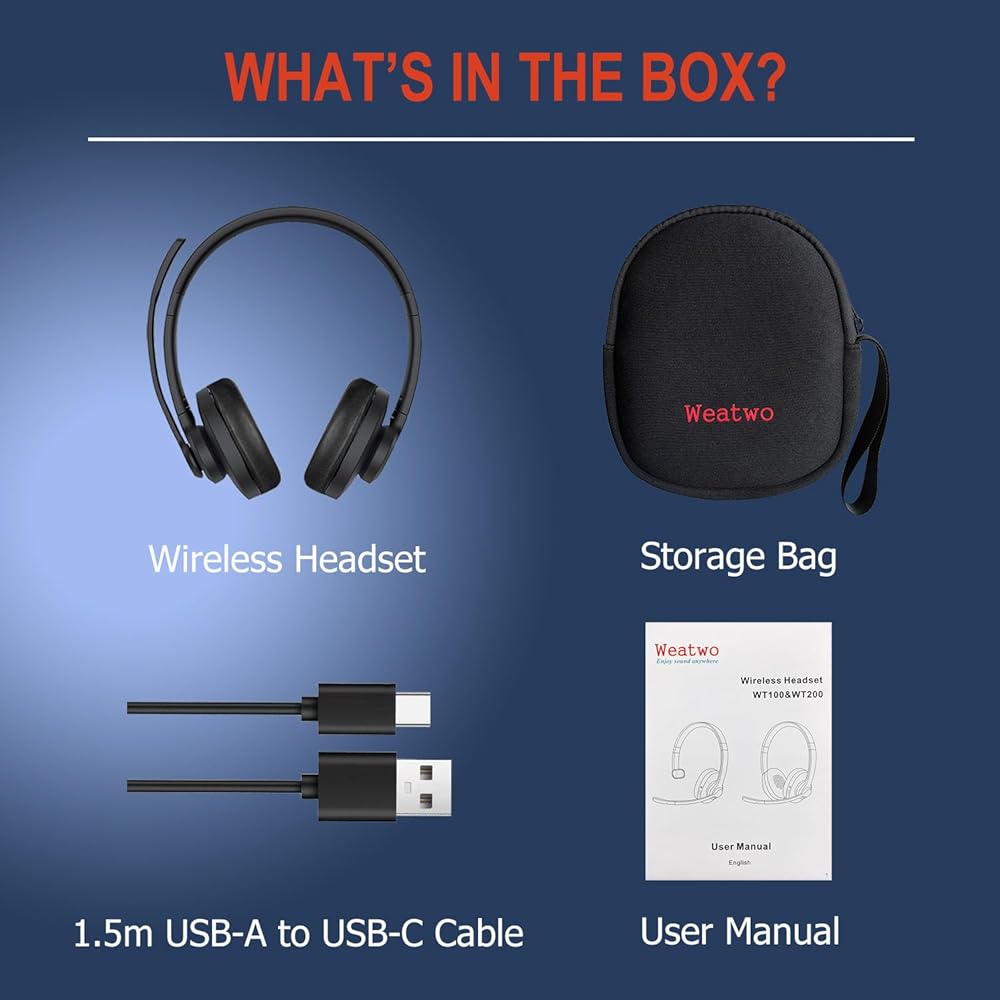 • ☀محتويات الصندوق والضمان☀: يحتوي الصندوق على سماعة الرأس اللاسلكية Weatwo، وحقيبة تخزين، وكابل USB-A إلى USB-C، ودليل المستخدم. ونقدم لك استرداد الأموال لمدة 45 يومًا وضمانًا لمدة عام بدون قلق لسماعات الرأس. إذا كان لديك أي أسئلة، الثابتة والمتنقلة تكون حرة في الاتصال بنا.
