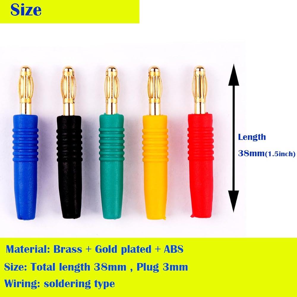 15 قطعة 3 مللي متر رئيس قابس موزي مطلية بالذهب سلك مكبر الصوت موصلات قابس الموز (متعدد الألوان)