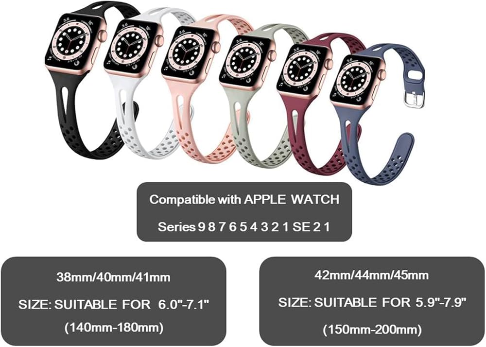 Compatible With: Size 38/40/41 mm fits for 6.0"-7.1" (140 mm-180 mm), Size 42/44/45 mm fits for 5.9"-7.9" (150 mm-200 mm). Perfect replacement for all styles apple watch wristband. (Note): It is not compatible for Apple Watch Ultra and Ultra 49 mm