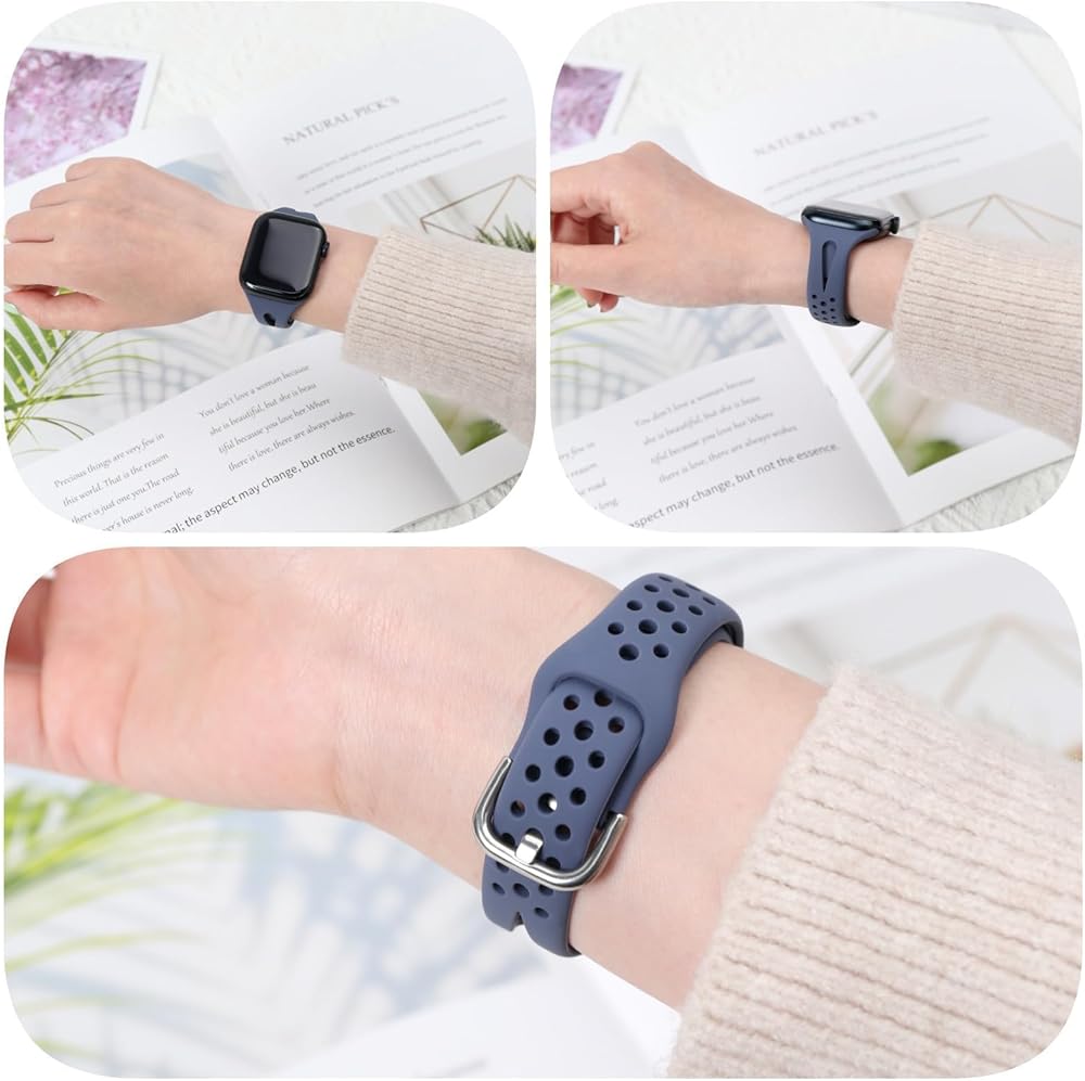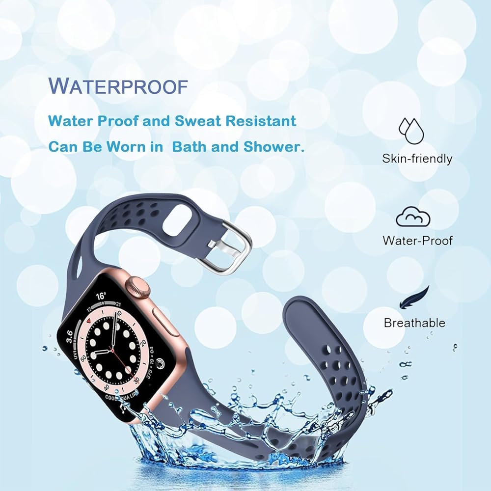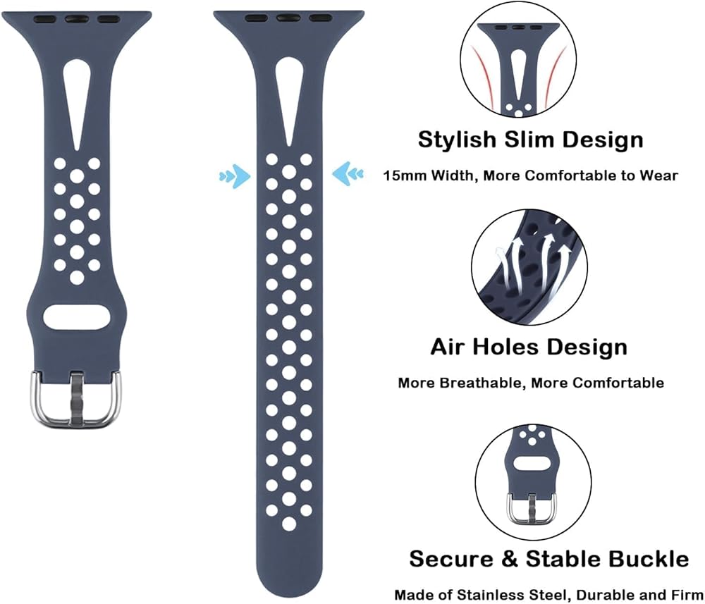 Stylish Slim Design & Premium Soft Silicone Material: Slim Sport Band for apple watch is made of soft silicone and stainless steel buckle.It is light-weight, durable and skin-friendly. Perfect for workout, swimming, climbing, hiking, traveling