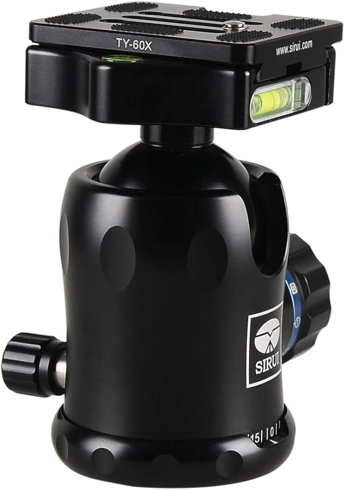 The Sirui K-30X II Ball Head unique locking mechanism for precision and safety. Separate control knobs for panning and locking. Friction knob is conveniently located on the main locking knob. 3 bubble levels allow precise horizontal leveling for critical shooting situations. Arca-compatible SIRUI Quick Release Plate TY-60X, rubber non-slip surface and 1/4 bolt with folding D Ring for easy attachment to your camera.