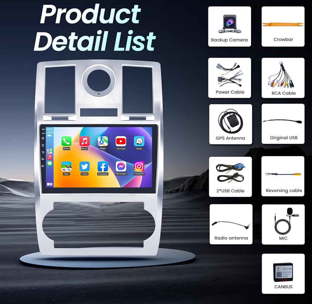 【راديو السيارة Android 13】 ستيريو راديو السيارة لكرايسلر 300C 2004 2005 2006 2007 2008 2009 2010 2011. نظام التشغيل Android 13. ذاكرة وصول عشوائي سعتها 2 جيجابايت + ذاكرة تخزين داخلية 64 جيجابايت. 𝐩𝐫𝐨𝐯𝐢𝐝𝐞 𝐢𝐧𝐬𝐭𝐚𝐥𝐥𝐚𝐭𝐢𝐨𝐧 𝐬𝐮𝐩𝐩𝐨𝐫𝐭 𝐚𝐧𝐝 𝐚𝐥𝐥 𝐭𝐨𝐨𝐥𝐬 𝐚𝐧𝐝 𝐚𝐜𝐜𝐞𝐬𝐬𝐨𝐫𝐢𝐞𝐬 𝐧𝐞𝐞𝐝𝐞𝐝 𝐟𝐨𝐫 𝐢𝐧𝐬𝐭𝐚𝐥𝐥𝐚𝐭𝐢𝐨𝐧 𝐚𝐫𝐞 𝐢𝐧𝐜𝐥𝐮𝐝𝐞𝐝 𝐢𝐧 𝐭𝐡𝐞 𝐛𝐨𝐱
