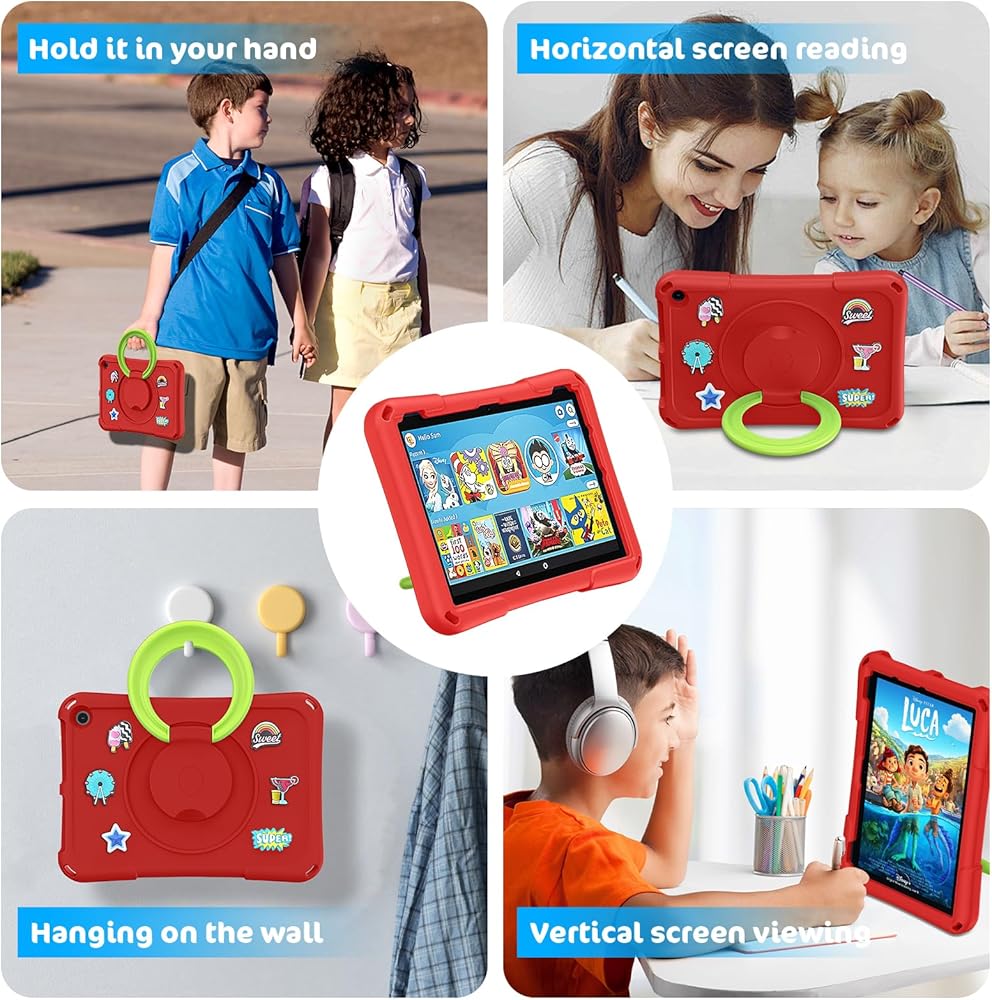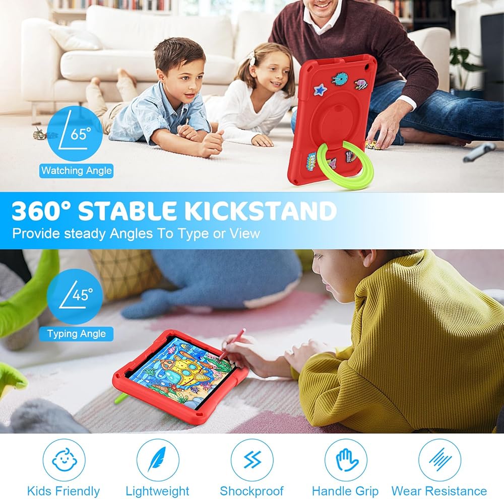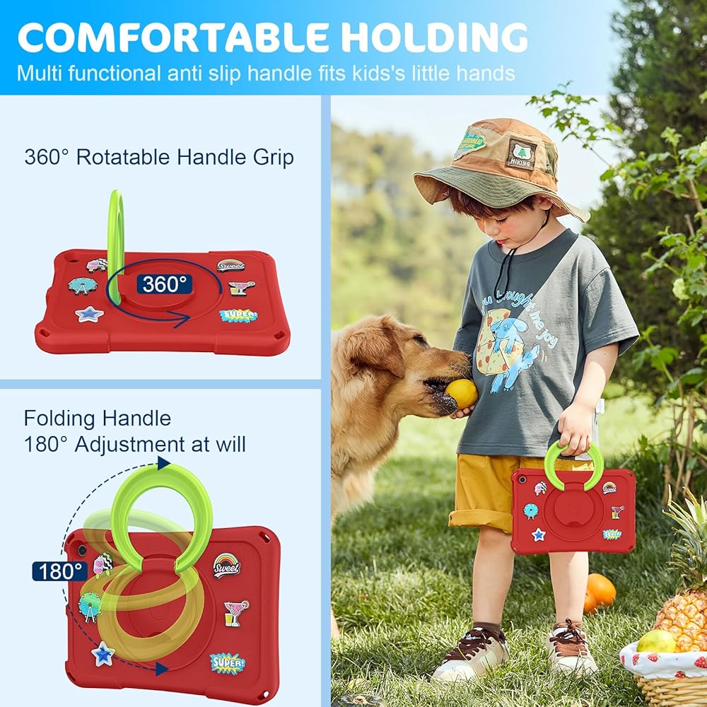 3. The built-in 360 degree rotatable ring bracket can support your tablet in a horizontal or vertical position. 10 inch tablet case for kids can also be made into a handle for easy portability.