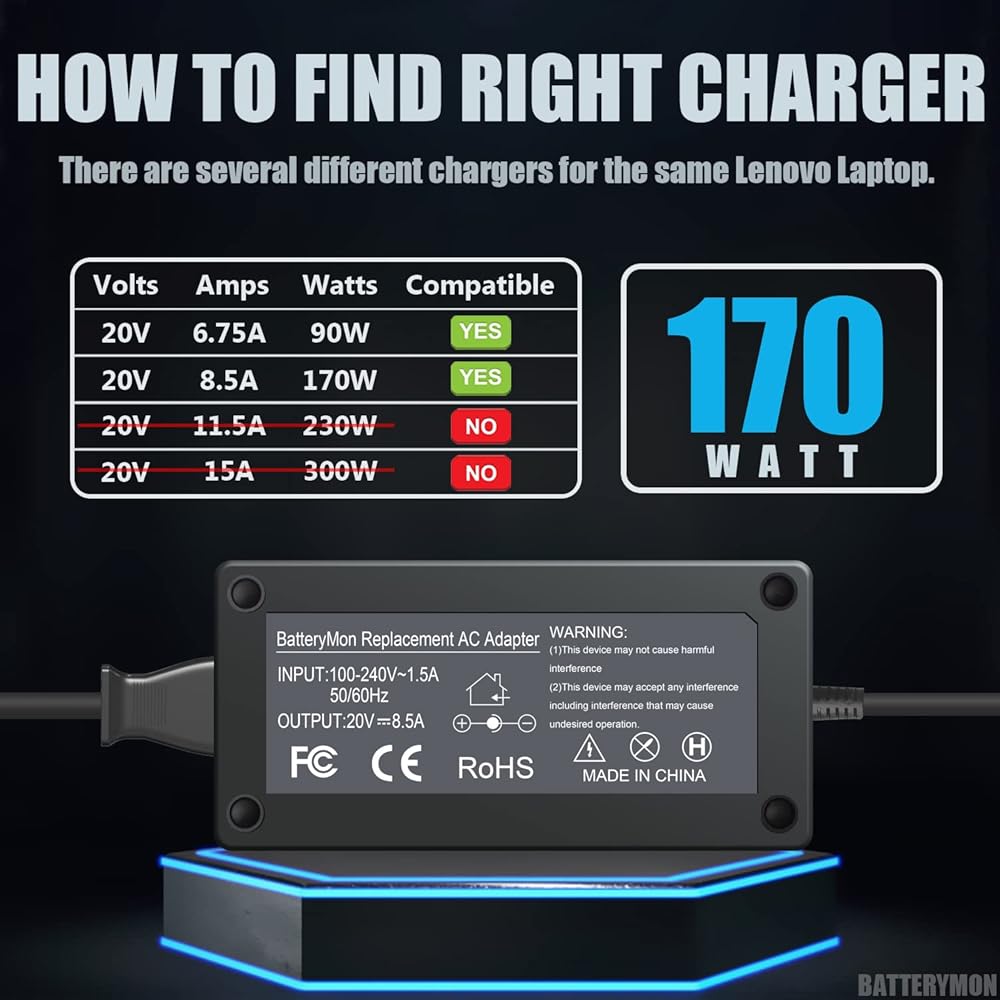 سلك طاقة 170 وات 20 فولت 8.5 أمبير لجهاز Lenovo Thinkpad P51 P52 P53 P70 P71 P73 P1 P16 P17 T15g Z510 Z710 G410 X1 Extreme P1 P15V T15P Legion Y7000 Y700 T540p Flex 14 شاحن الكمبيوتر المحمول ADL170NDC2A 4X20E50558 135 واط