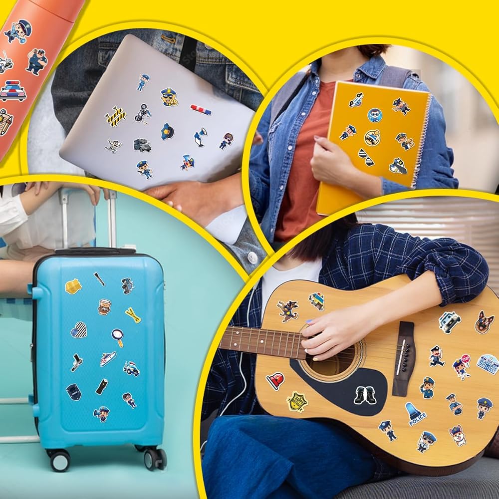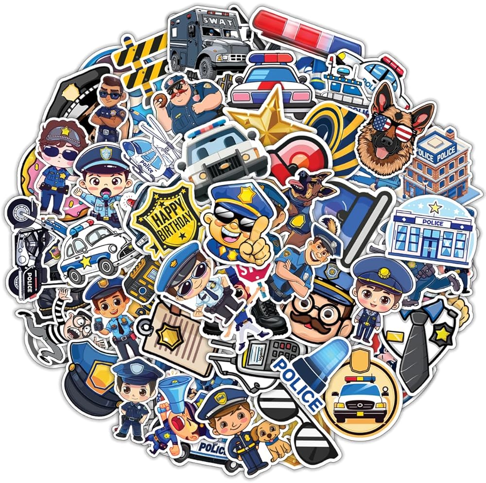100 قطعة من ملصقات الشرطة للأطفال - سيارة الشرطة، شارات ملصق مضاد للماء لزجاجات المياه والكمبيوتر المحمول وأمتعة الكمبيوتر وسجل القصاصات والمراهقين والبالغين والبنات وديكورات أعياد الميلاد المضحكة
