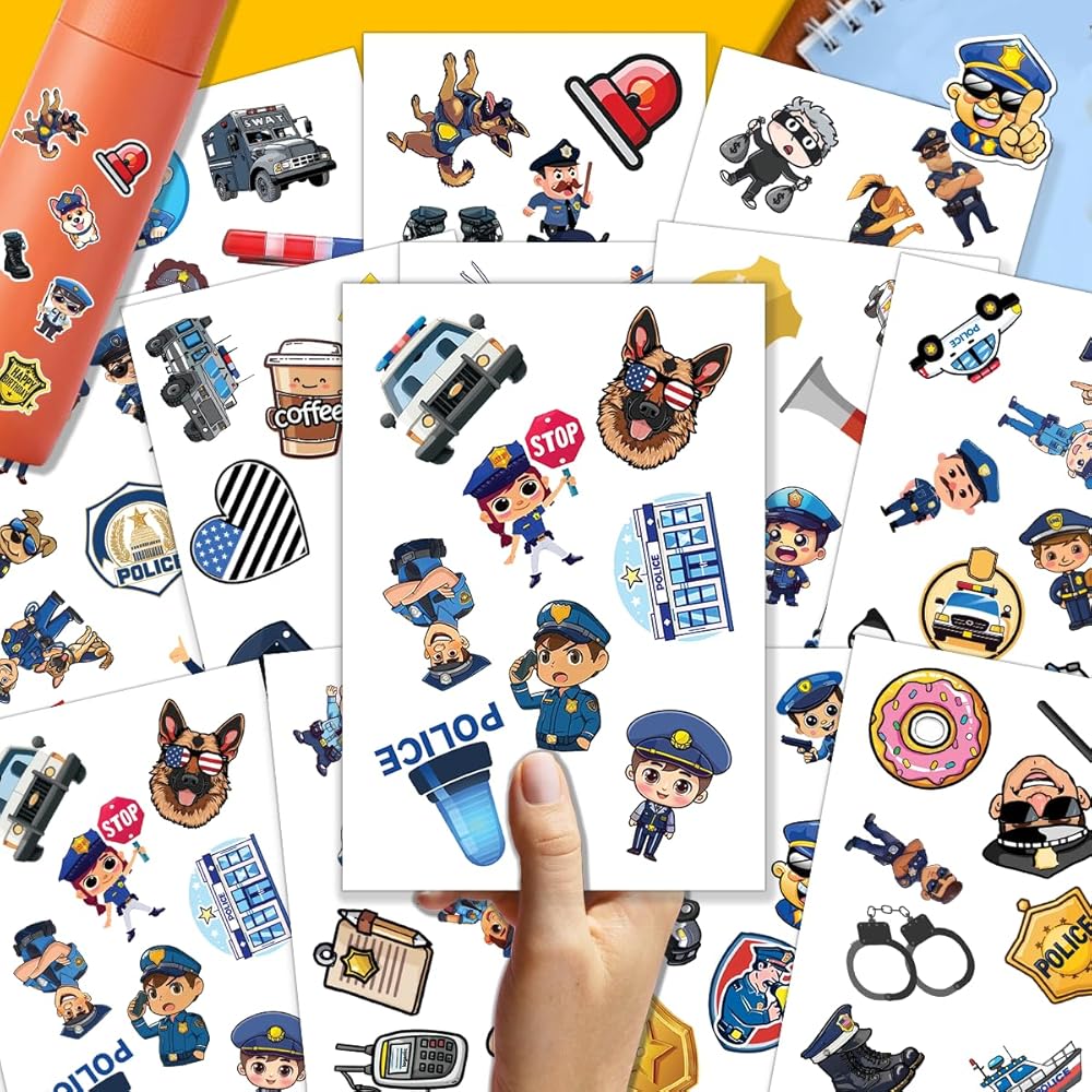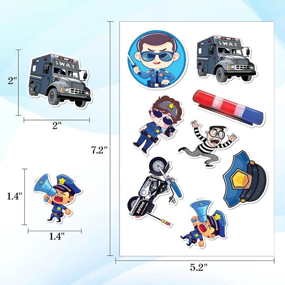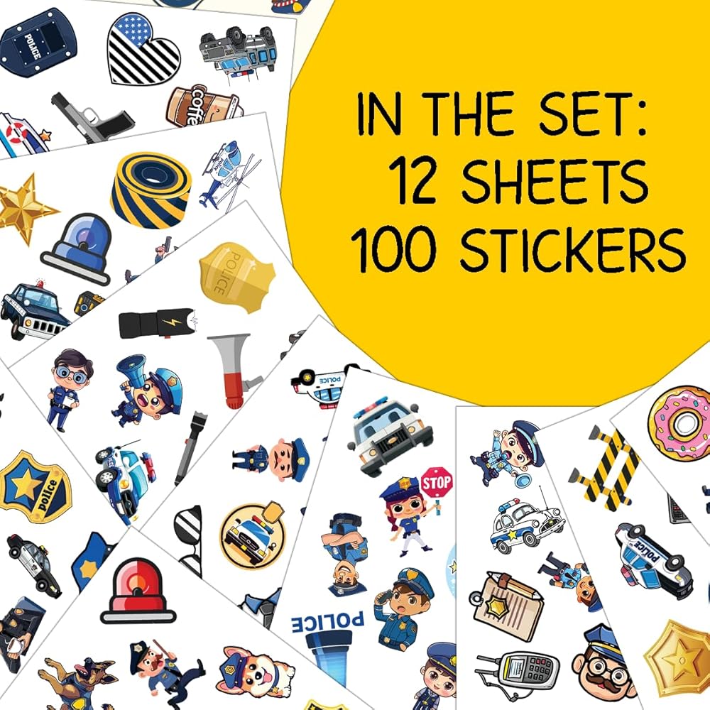 PACKAGE INCLUDES: The package includes 12 sheets, each with 100 PCS and measures 7,2 x 5.1 inches, as well as a full set of police stickers. This amazing ornament assortment is sure to exceed your expectations.
