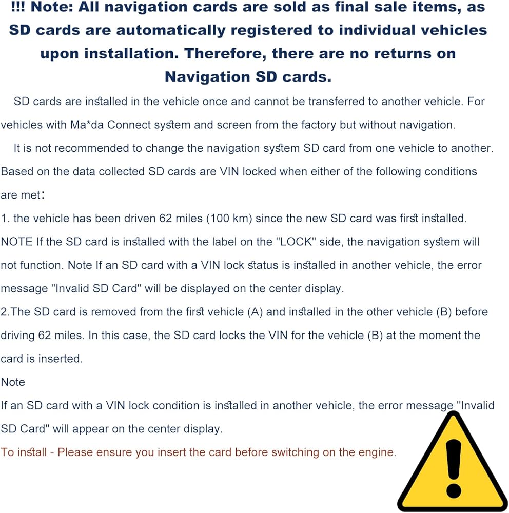 Please note that this SD card only support the 3 CX-30 CX-50 MX-30 CX-5 CX-9 2021-2023 model year. If you need this model year, please look at part numbers. Please check if your VIN number is compatible with our products before purchasing.