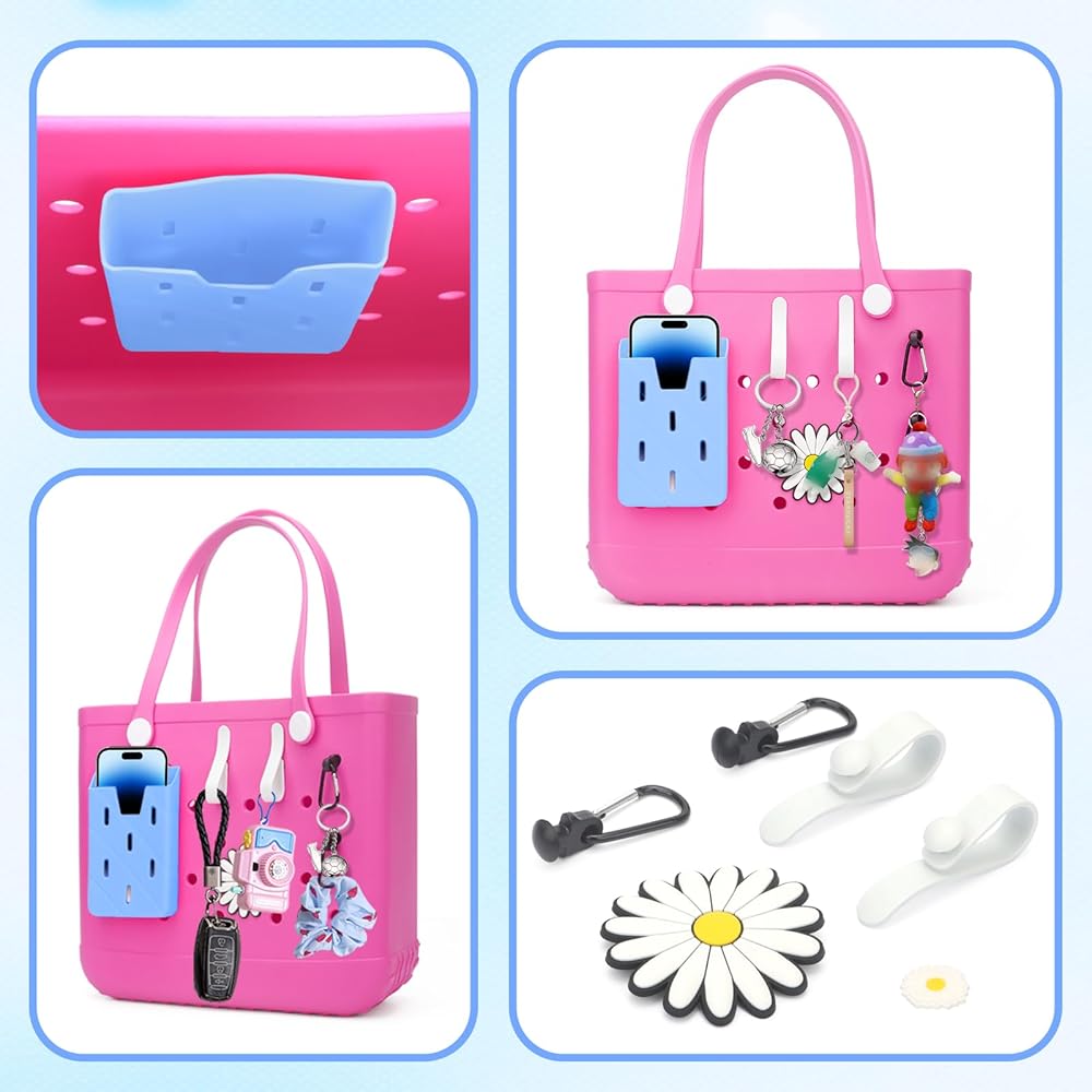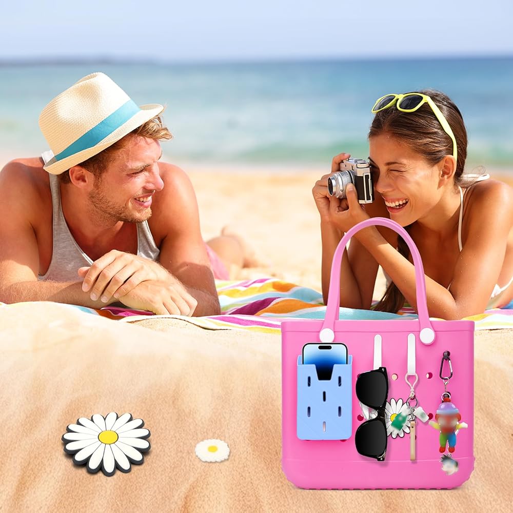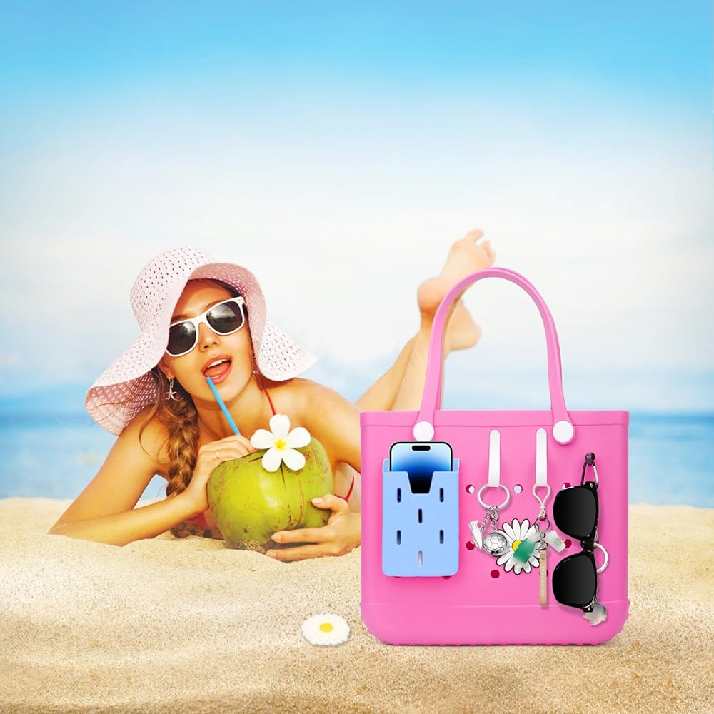 【with decorations 】This cell phone holder is made of high quality silicone, very thick and sturdy, these accessories and keychains are compatible with all Borg Bags/Southern Tote Bags. -Comes with decorative flowers and beach themed accessories perfect for the beach, pool, shopping or anywhere else which can make your bag look more charming. 【There are 2 themes to choose from】