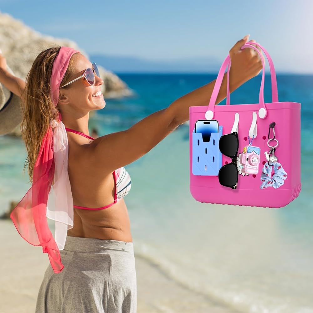 【Compatible with Bogg Bags】This phone holder compatible with all Bogg bags organizer , will also fit other rubber totes as well. Perfect for the beach, Pool, Sporting event, or anywhere you carry your bag and be able to take your phone out anytime.