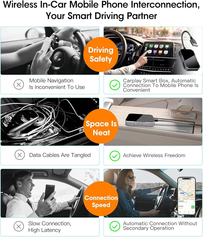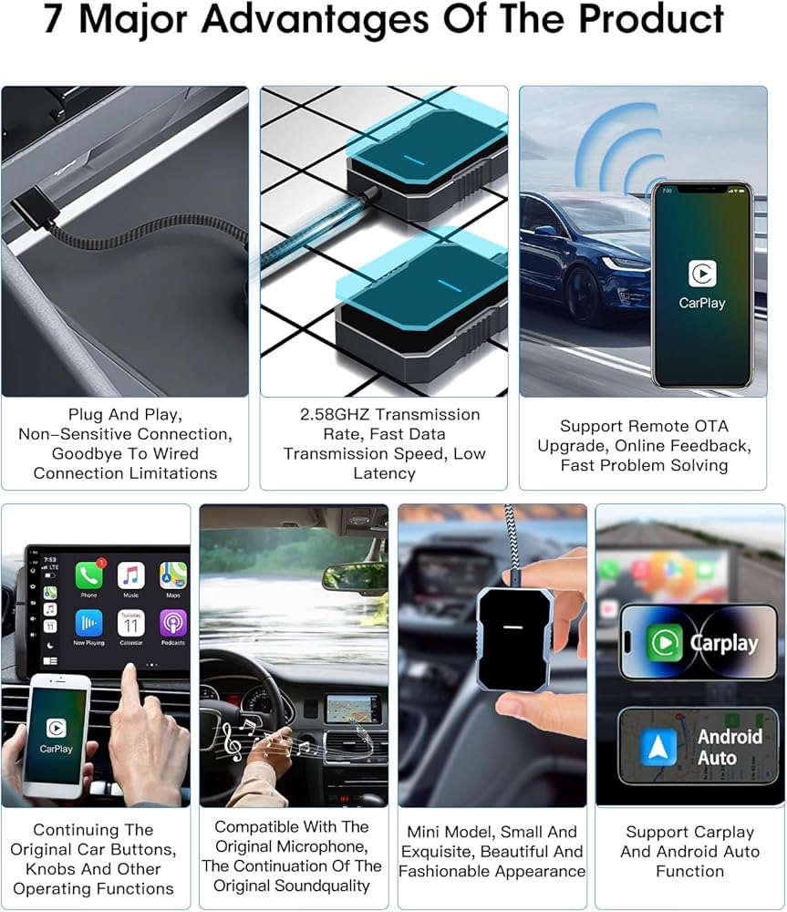 أداء مستقر لمحول Apple Carplay اللاسلكي: استمتع بنقل الصوت بسلاسة واتصال مستقر مع محول CarPlay اللاسلكي الخاص بنا لأجهزة Apple وAndroid Auto. مثالية لجميع متطلبات الترفيه داخل السيارة.