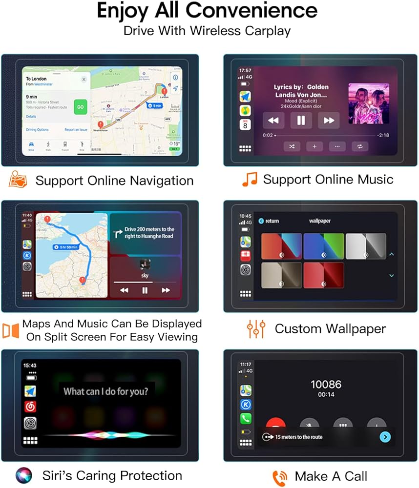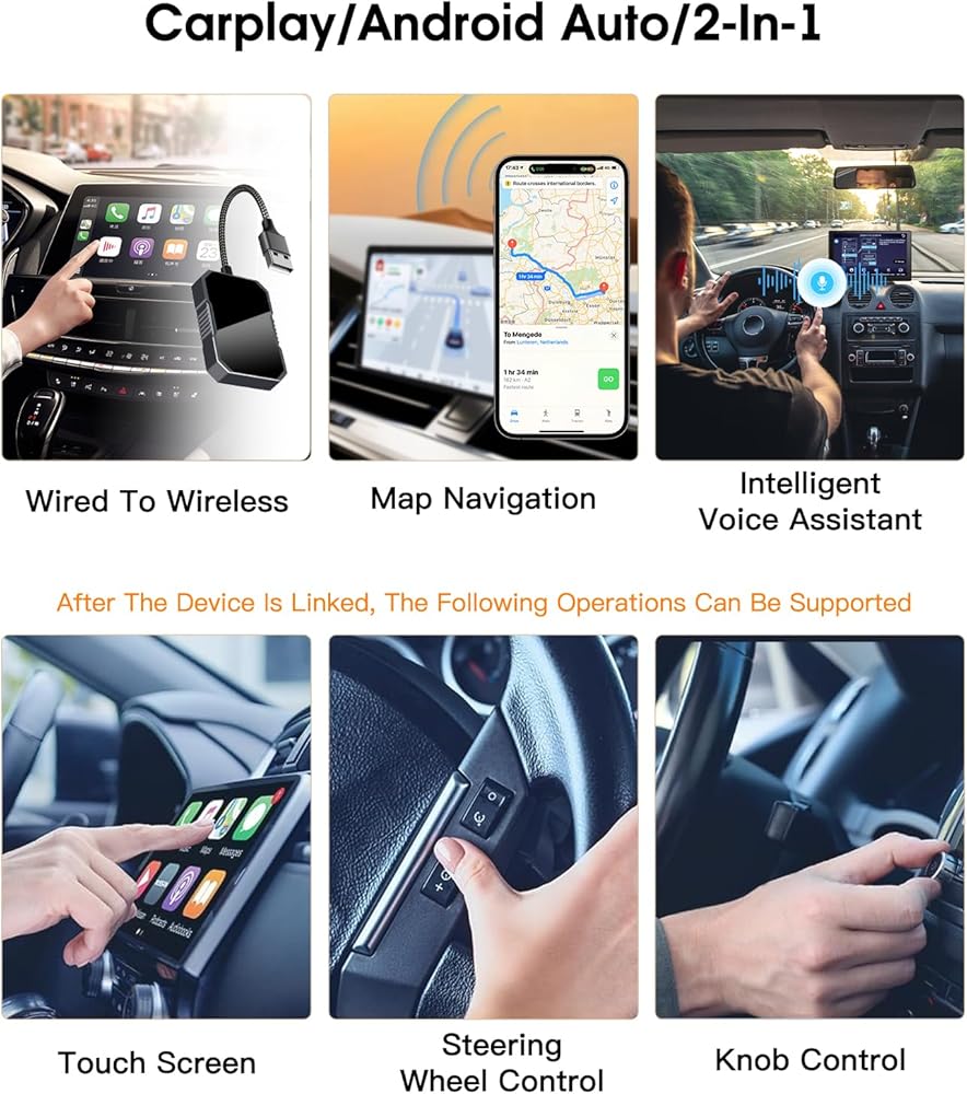 التوافق الواسع للمحول اللاسلكي Car Play: يدعم المحول اللاسلكي Apple CarPlay والمحول اللاسلكي Android Auto مجموعة متنوعة من موديلات السيارات والأجهزة المحمولة، مما يوفر المرونة وتجربة مستخدم رائعة.