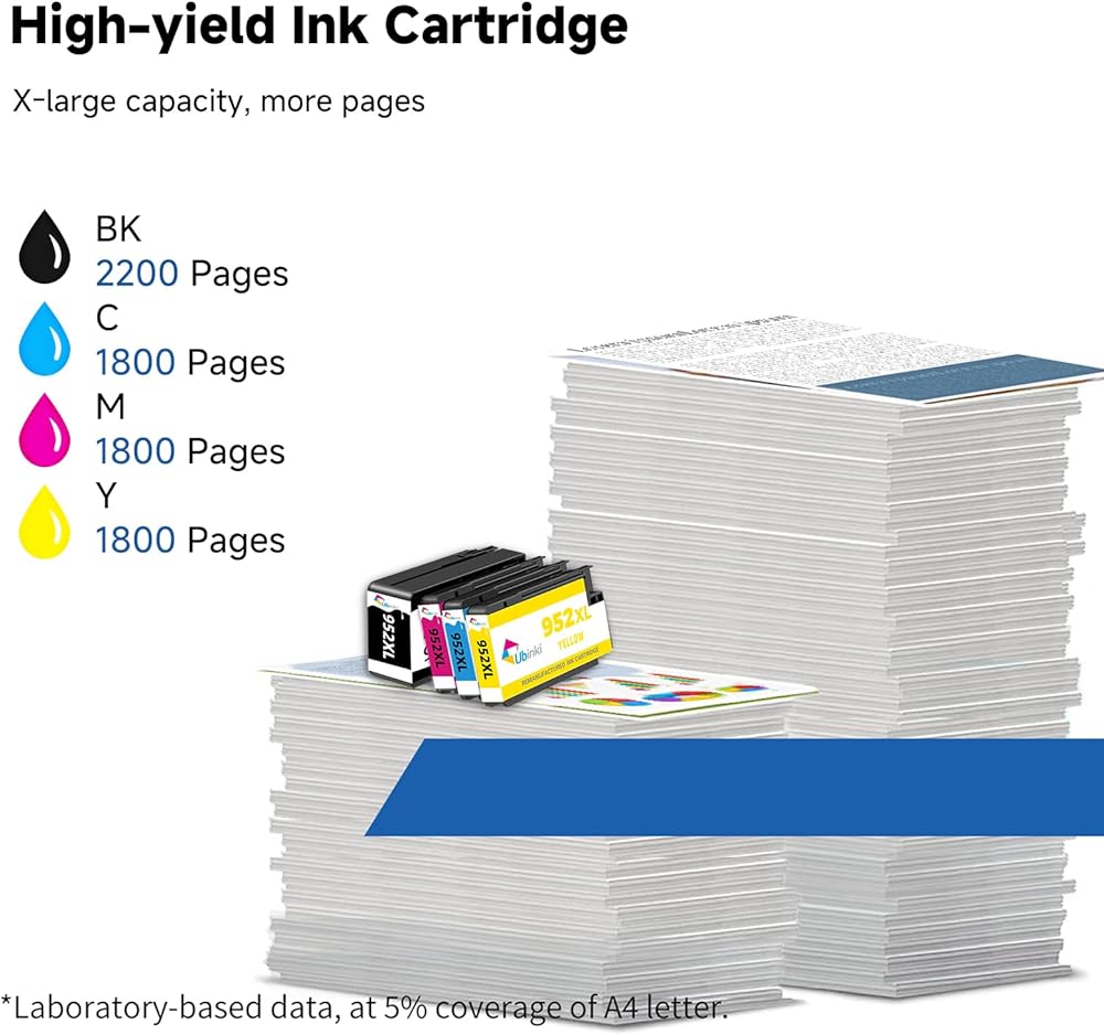 - إنتاجية عالية: ما يصل إلى 2200 صفحة لكل خرطوشة حبر سوداء 952 XL و1800 صفحة لكل خرطوشة حبر ثلاثية الألوان 952XL (تغطية بنسبة 5%)