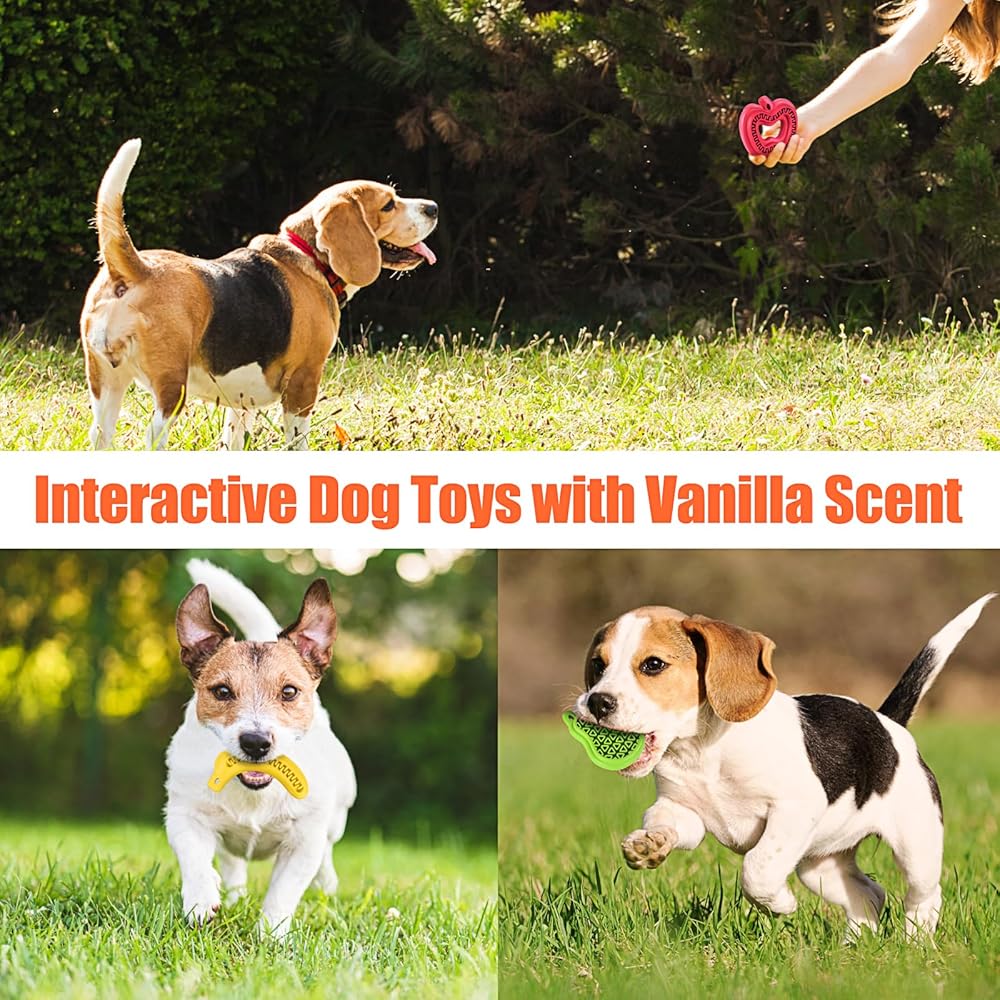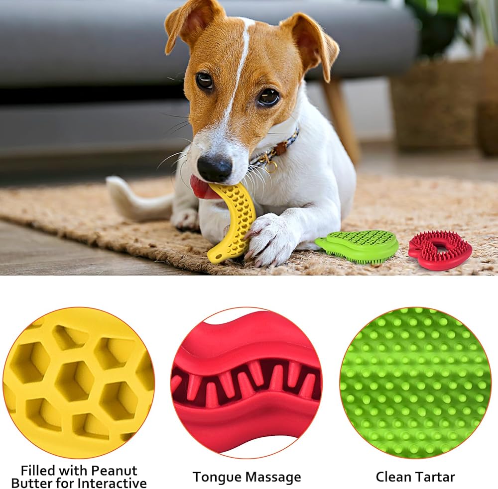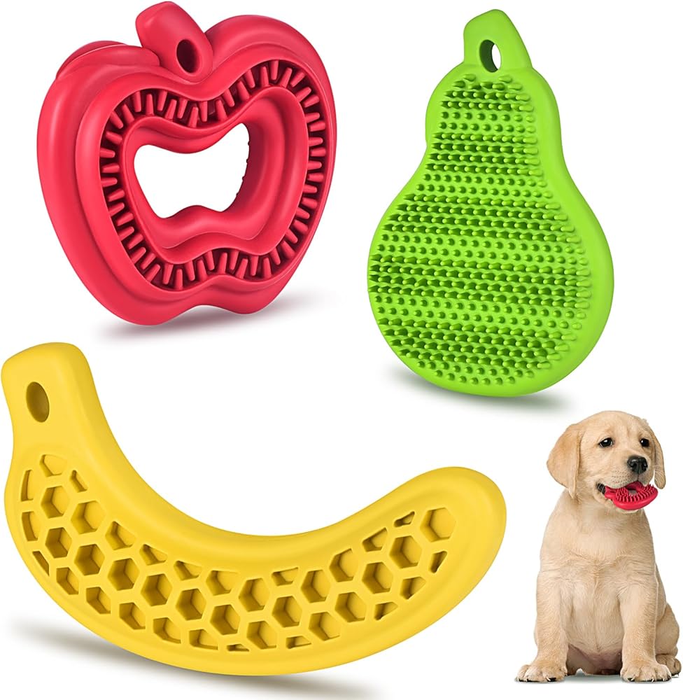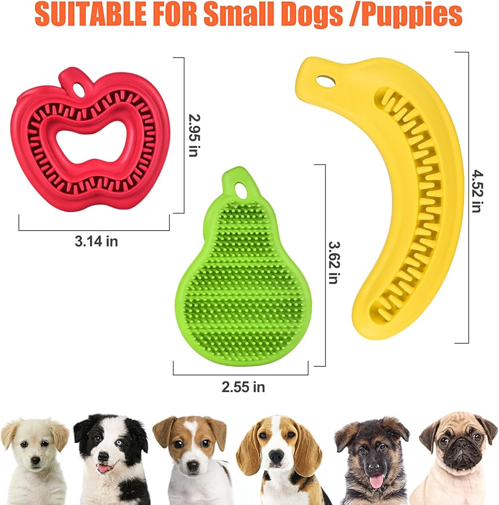 ثلاثة تصميمات مختلفة الأشكال: تأتي ألعاب الكلاب الخاصة بنا للجراء بأشكال مستوحاة من الفاكهة وهي غنية بنكهة النعناع المنعشة للحفاظ على مشاركة صديقك المكسو بالفراء. ألعاب المضغ اللطيفة هذه مثالية لإرضاء سلوك المضغ الطبيعي لكلبك وتوفير ساعات من الترفيه.