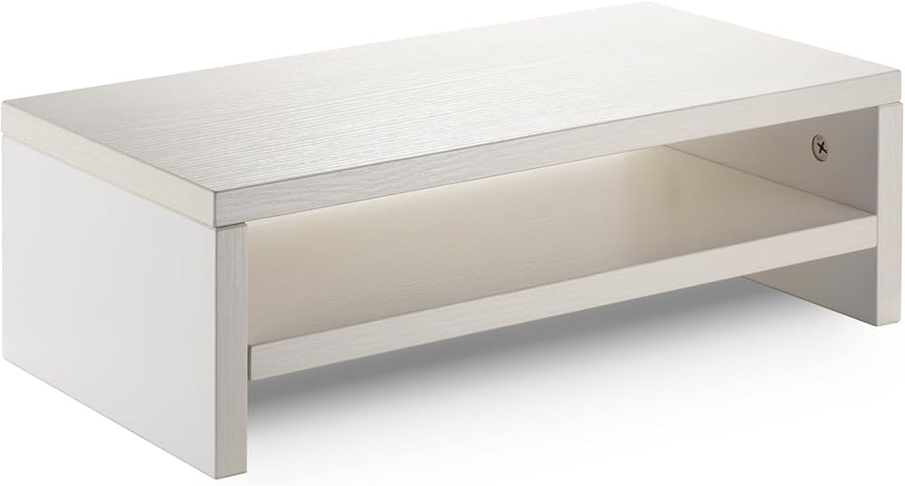حامل شاشة بطبقتين مقاس 16.7 بوصة، حامل شاشة كمبيوتر أبيض، حامل شاشة خشبي لشاشة الكمبيوتر/منظمة سطح المكتب للطابعة