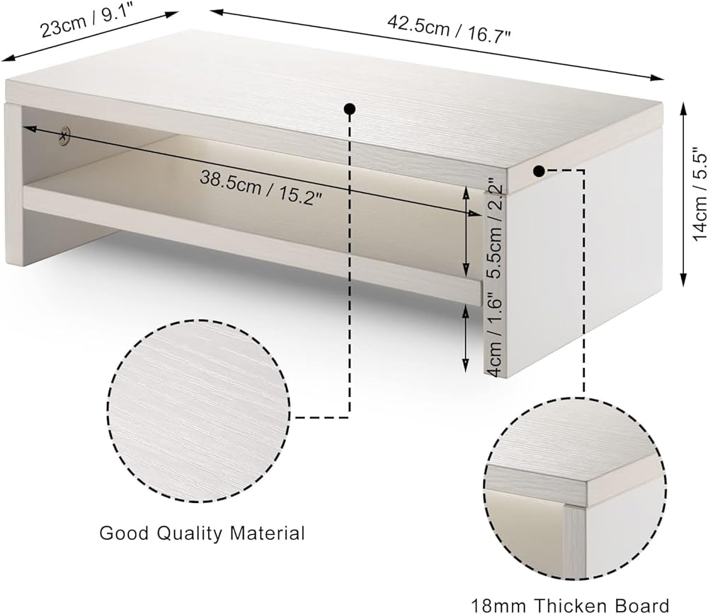 • The 2-tier monitor stand provides additional storage space to store many office supplies such as books, notebooks, headphones, power banks, paper, etc., keeping your workstation organized. It is suitable for use in home study rooms, offices, living rooms, classrooms, conference rooms.