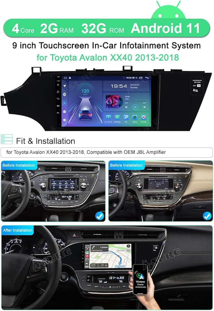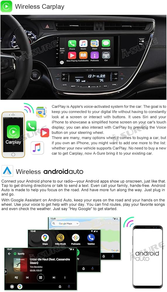 ASURE 9 بوصة Android Car Stereo Radio ترقية لتويوتا أفالون 2013-2018، 4Core 2G+32G Car Dash 1280x800 شاشة تعمل باللمس GPS رئيس وحدة الملاحة، مشغل فيديو الوسائط المتعددة مع Carplay اللاسلكي، Android Auto