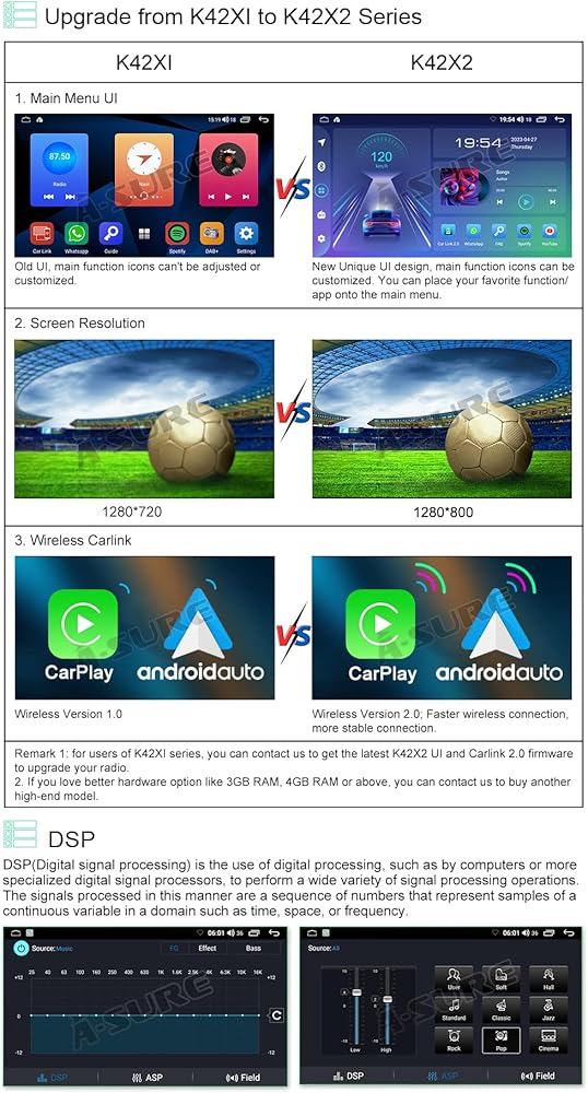 【بلوتوث وDSP وواي فاي وملاحة مزدوجة】الاتصال والرد بدون استخدام اليدين، مما يجعل مكالمتك أكثر أمانًا أثناء القيادة، والميكروفون المدمج، والميكروفون الخارجي اختياري، يرجى الاتصال بنا عند الحاجة. يمكن لمعالجة الصوت المحيطي DSP تخصيص أفضل موسيقى تأثير تشغيل الصوت لمقاعد مختلفة وفقًا لاحتياجاتك. دعم WiFi أو وظيفة النقطة الساخنة، مريحة للغاية لتنزيل التطبيقات، والخريطة غير المتصلة بالإنترنت وما إلى ذلك، ودعم موقع الإنترنت وتحديد المواقع عبر الأقمار الصناعية GPS، مما يجعل التنقل أكثر دقة