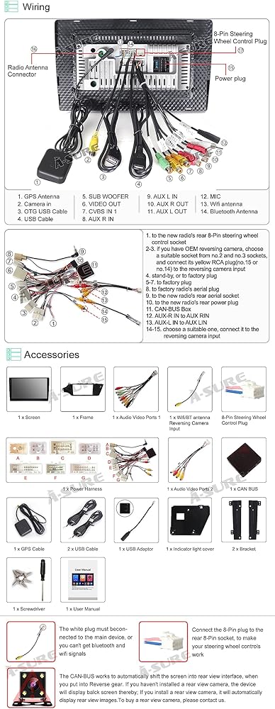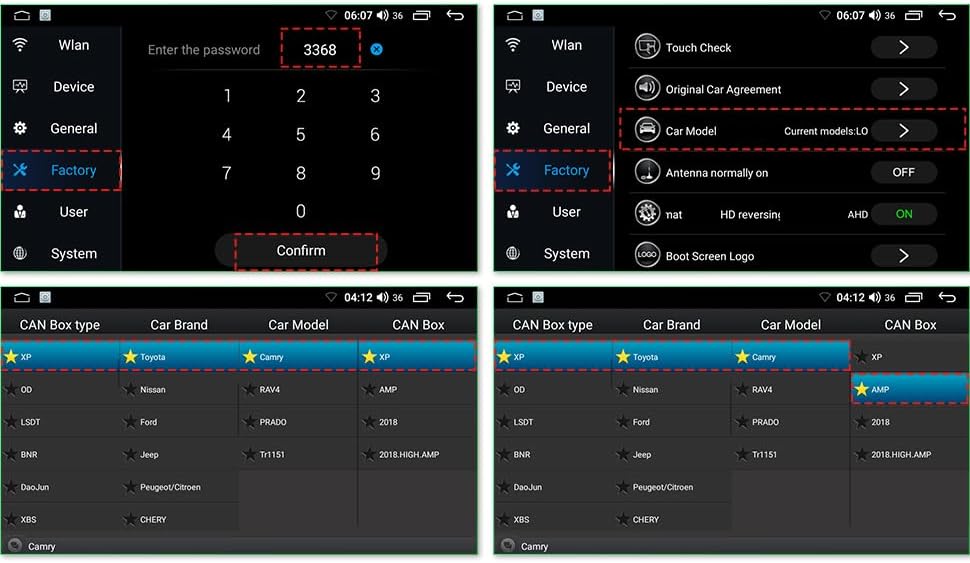 【التحكم في عجلة القيادة وكابلات USB مزدوجة】يتوفر سرج سلكي للتوصيل والتشغيل، سهل التركيب (تتطلب بعض كابلات swc للسيارات أسلاكًا يدوية، اتصل بنا إذا لم يعمل swc)، يدعم برنامج زر التحكم الأصلي في عجلة القيادة للسيارة وتخصيصه (انقر فوق الإعدادات) في القائمة الرئيسية، انتقل إلى المصنع وأدخل كلمة المرور 3368، واختر XP->Toyota->Camry->XP، أو اختر AMP أخيرًا إذا كانت سيارتك بها مضخم صوت من المصنع)،مزدوج تدعم كابلات USB الشحن لجهازين