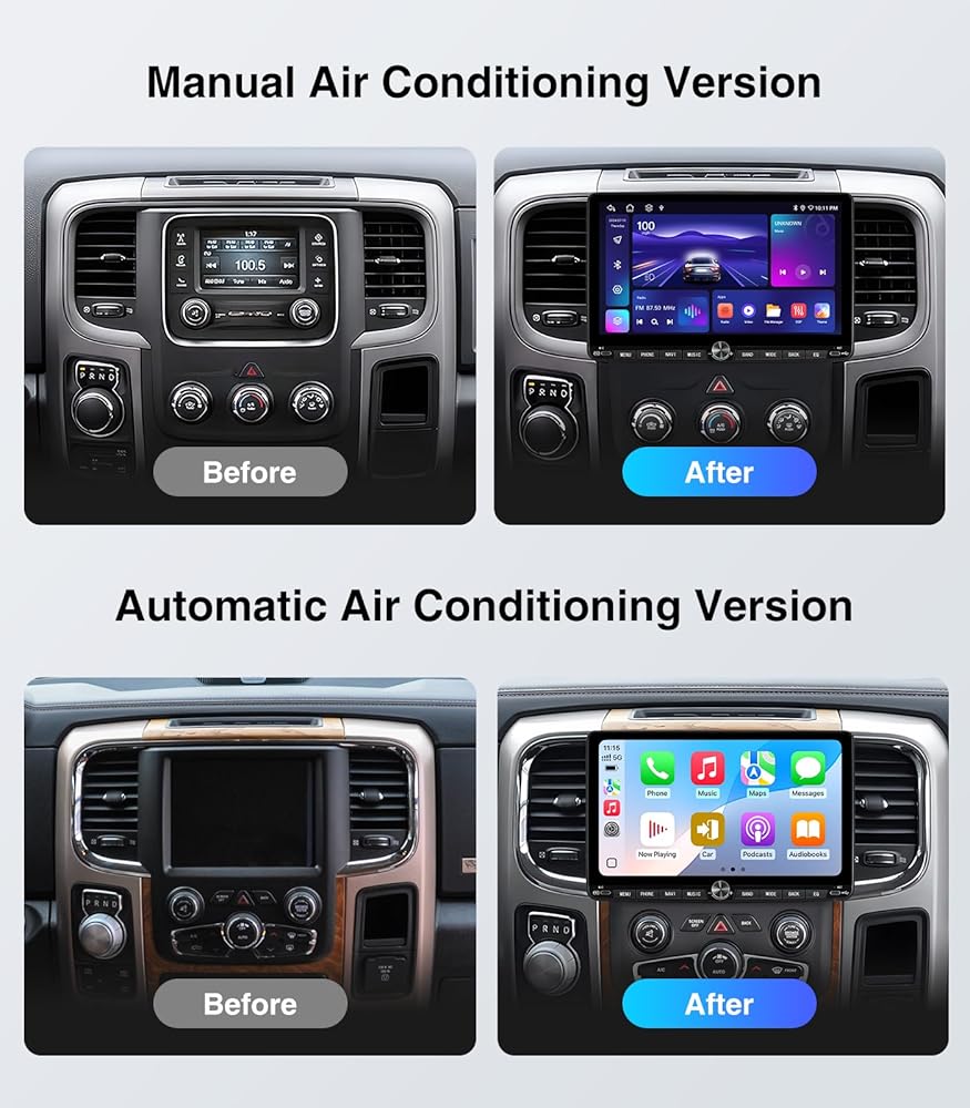 【التوصيل والتشغيل لترقية راديو Dodge Ram 】ملاءمة مخصصة لـ Dodge Ram 1500 2500 3500 2013-2018 مع تيار متردد تلقائي (تحكم تلقائي في المناخ) فقط. ملاحظة: إذا كنت تبحث عن هذا الطراز لـ Ram مع تيار متردد يدوي، فيمكنك البحث عن الرقم التعريفي القياسي ASIN: B0DB4W2Q2D على أمازون. يأتي هذا الاستريو مزودًا بوحدة رأس مدمجة في لوحة القيادة وكابلات أسلاك ووحدة فك ترميز CANbus ولوحة إطار. لا تحتاج إلى تعديل كابلات سيارتك. يدعم معظم الوظائف الأصلية. التحكم في عجلة القيادة والإشارة العكسية وما إلى ذلك.