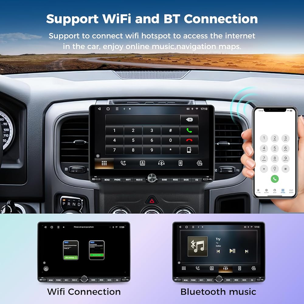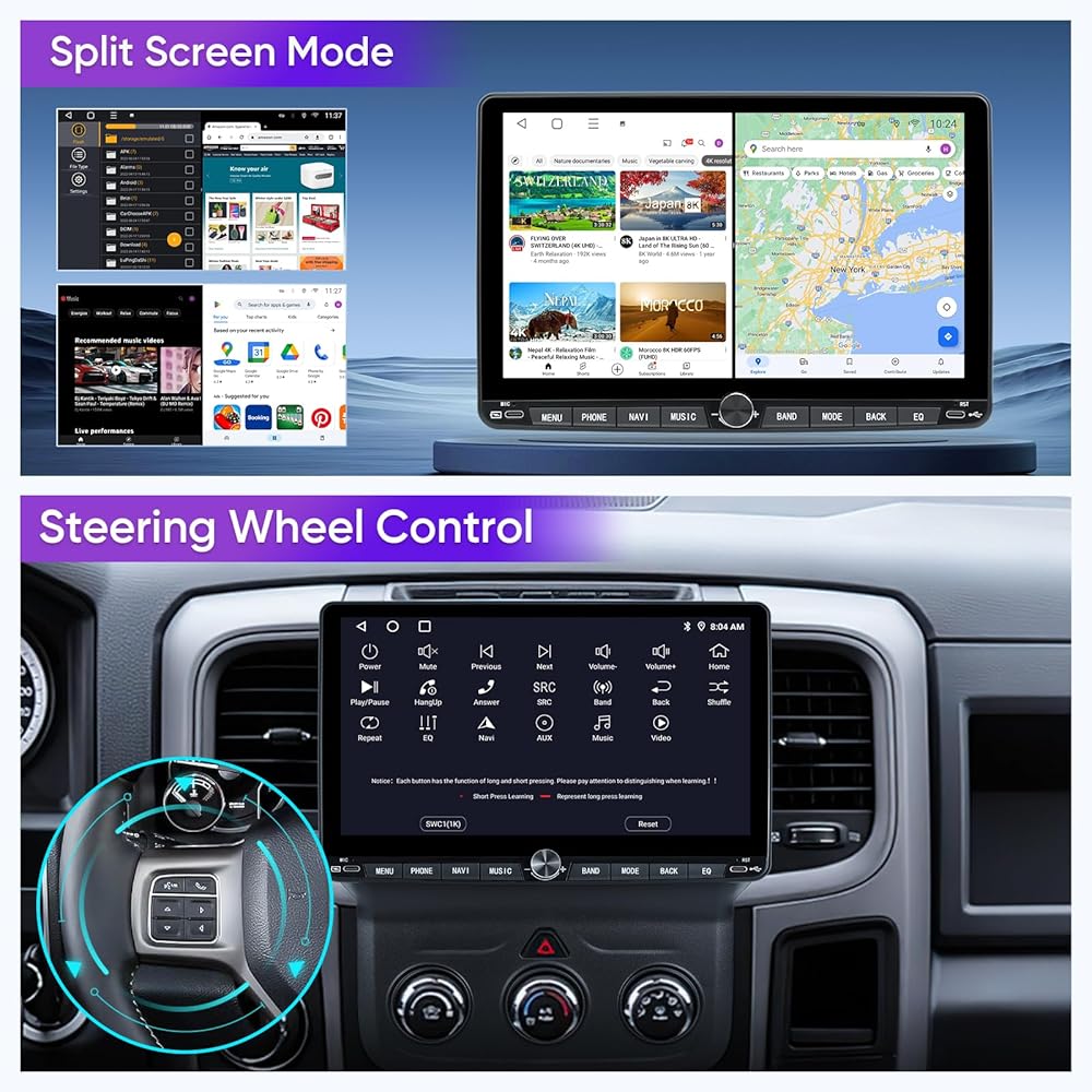 【GPS، 5G WiFi وBluetooth 5.0 لترقية راديو Ram 】الملاحة GPS المدمجة: (1) احصل على معلومات حركة المرور في أي وقت فقط عندما تكون الوحدة الرئيسية متصلة بالشبكة. (2) قم بتنزيل الخرائط غير المتصلة بالإنترنت، ولا تزال وظيفة GPS تعمل بدون شبكة. لا تضيع أبدا! يدعم شبكة WiFi مزدوجة النطاق 2.4 جيجا هرتز و5 جيجا هرتز، وتتمكن التطبيقات من الوصول إلى الإنترنت بسرعة فائقة وثبات. إصدار بلوتوث 5.0 مدمج. مكالمات بدون استخدام اليدين وتشغيل الموسيقى وتنزيل دليل الهاتف عن طريق توصيل الهاتف.