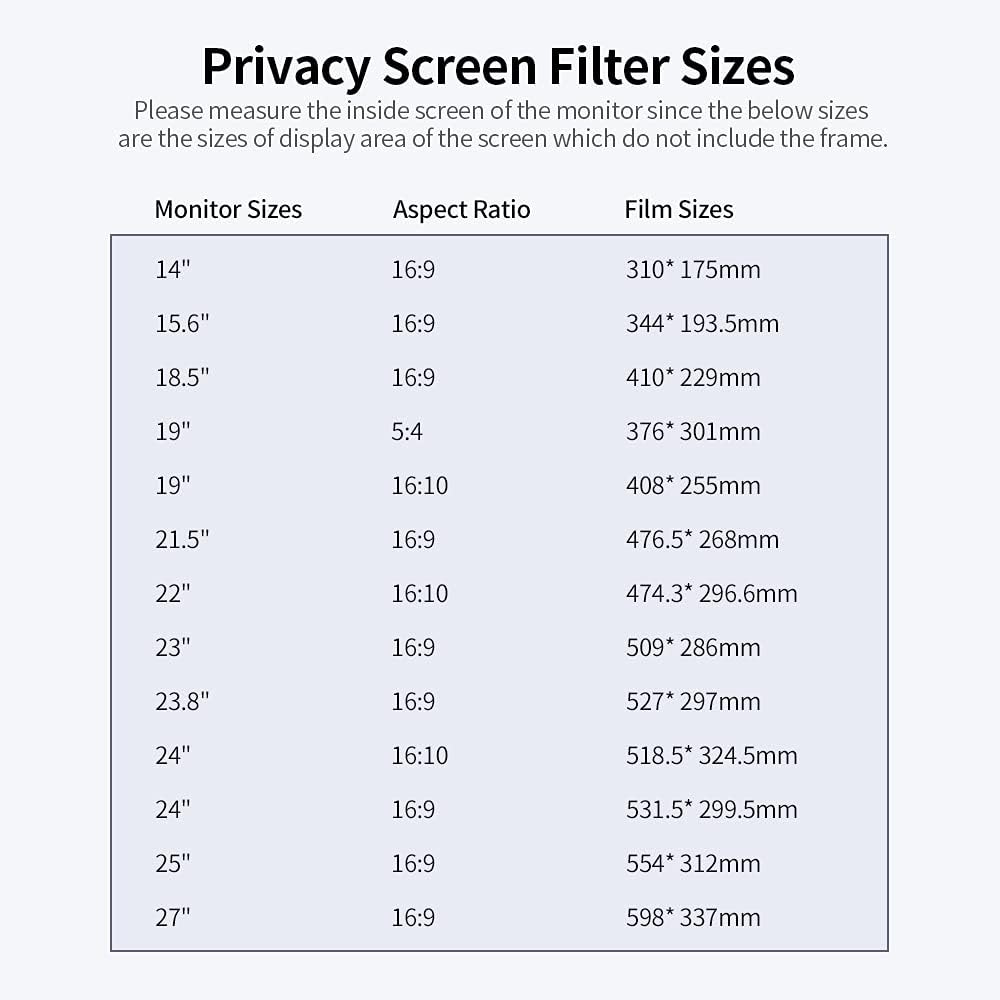 فيلم شاشة PET، مرشح شاشة الخصوصية ذو نفاذية عالية 30 درجة غير مرئي مضاد للأشعة فوق البنفسجية ومضاد للوهج لشاشة 23 بوصة مع نسبة عرض إلى ارتفاع 16:9