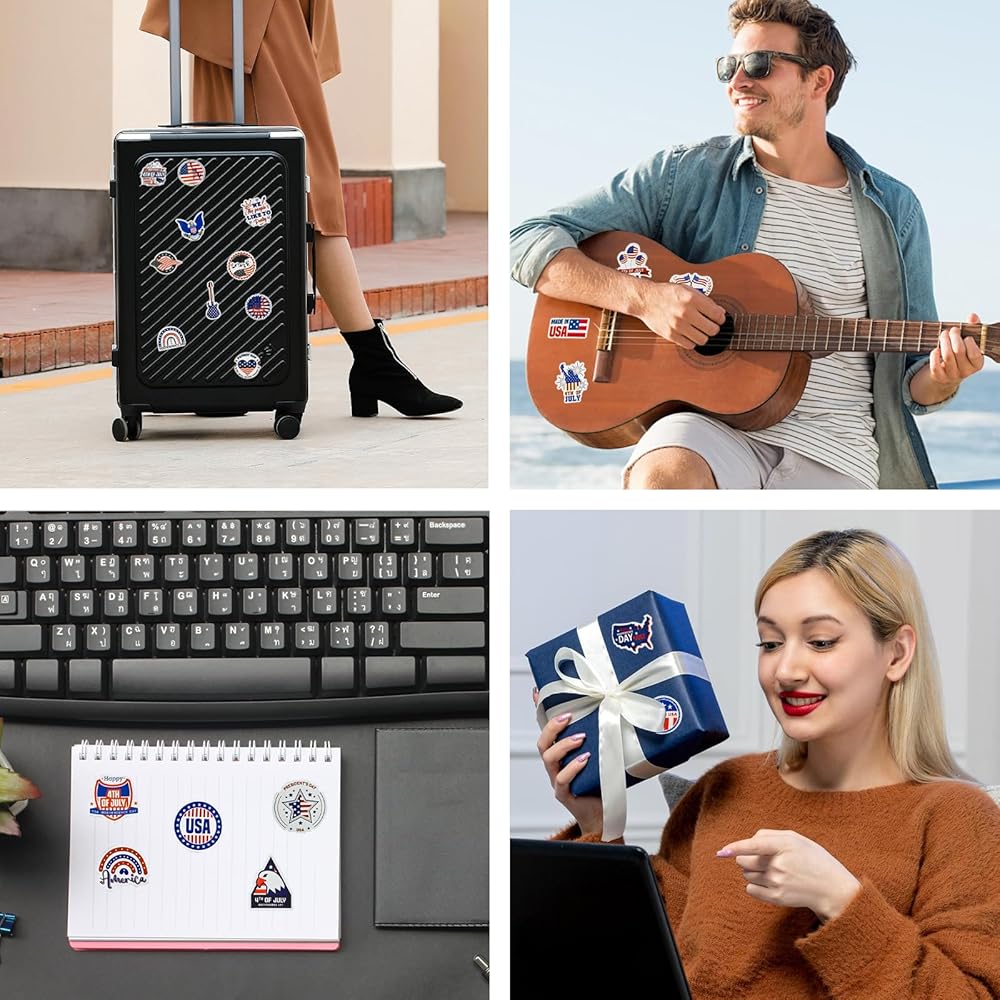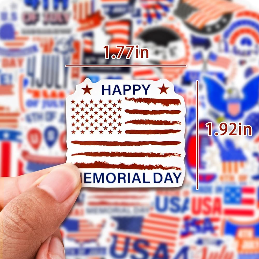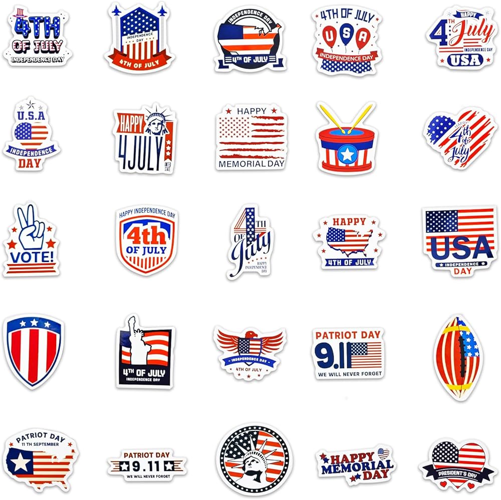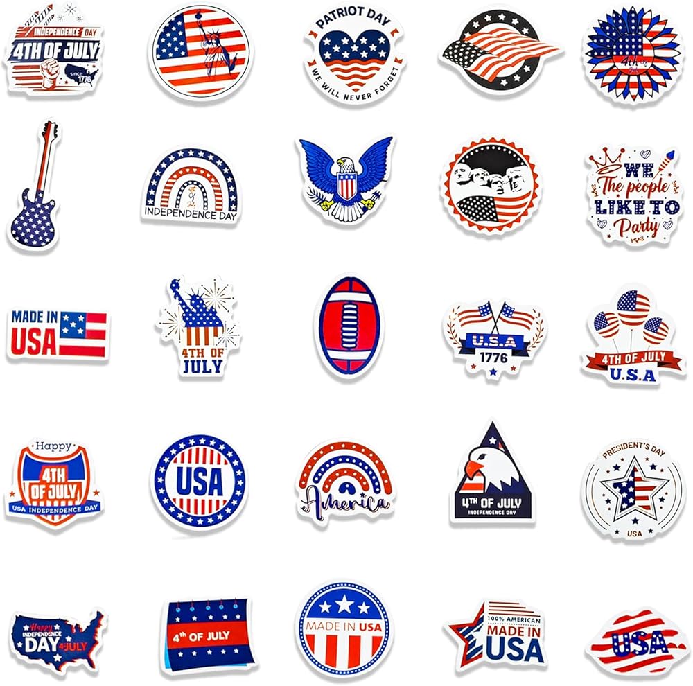 Unwrap the joy of decorating with our Independence Day Sticker Pack, embracing the festive spirit with 50 vibrant stickers. Each vinyl sticker, ranging from 1.3 to 2.7 inches, is a canvas for creativity, designed for effortless application on a myriad of surfaces. Our stickers are not just decorations; they're a celebration of freedom and fun. With a commitment to quality, these stickers promise a lasting color display, making them the stars of any celebration. Transform your belongings and spaces into a tribute to the red, white, and blue with our easy-peel, no sticky mess stickers. Let the festivities begin!
