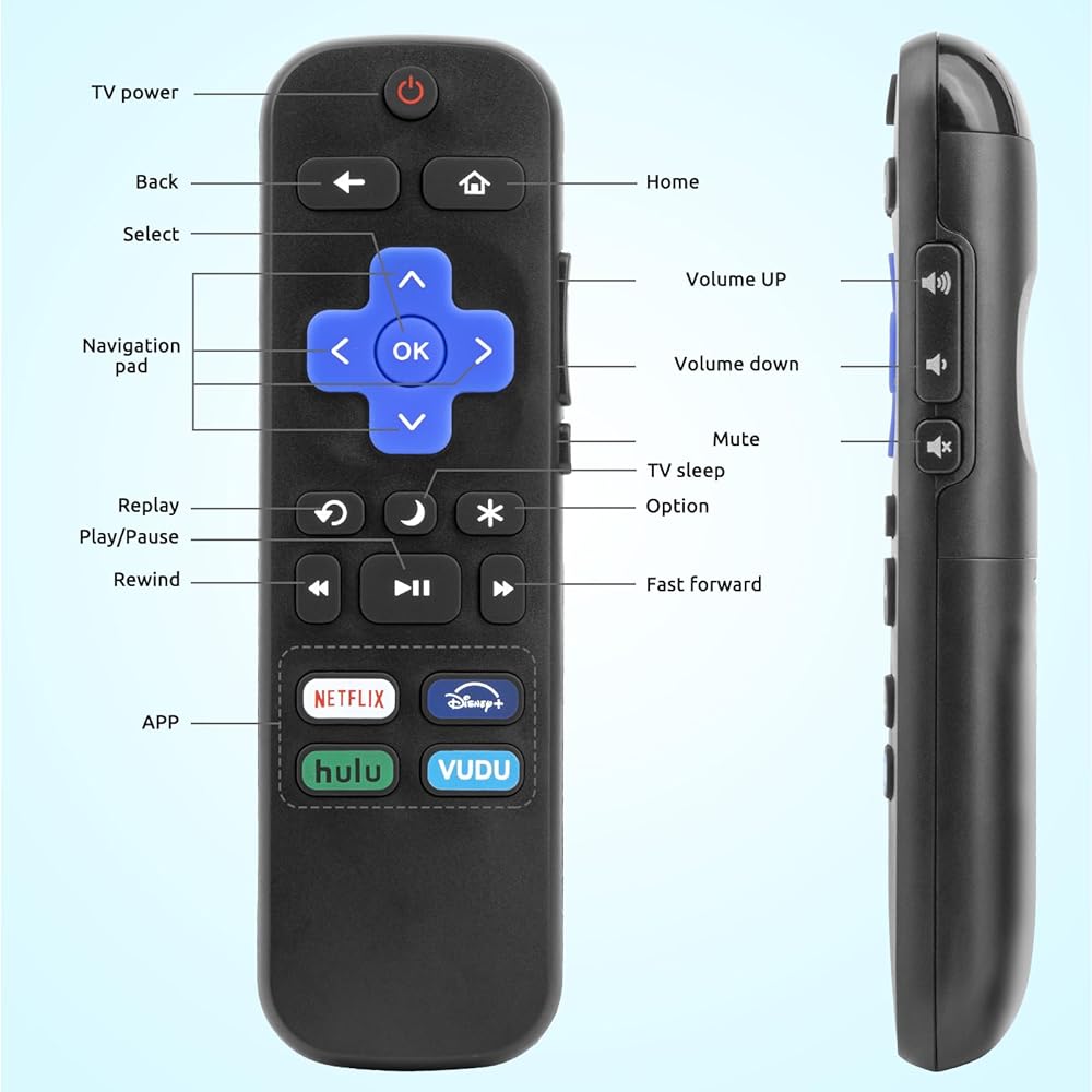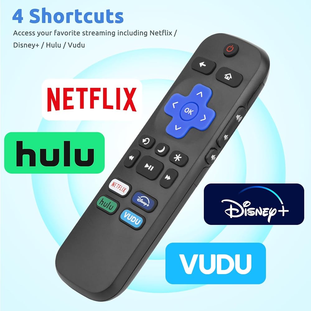 Featuring a sleek design and intuitive layout, our remote makes navigating your Roku TV a breeze. With shortcut buttons for popular streaming services like Netflix, Disney+, Prime Video, and Hulu, accessing your favorite content has never been easier. Plus, our remote boasts a quick response time of 0.3 seconds, ensuring seamless control of your TV.