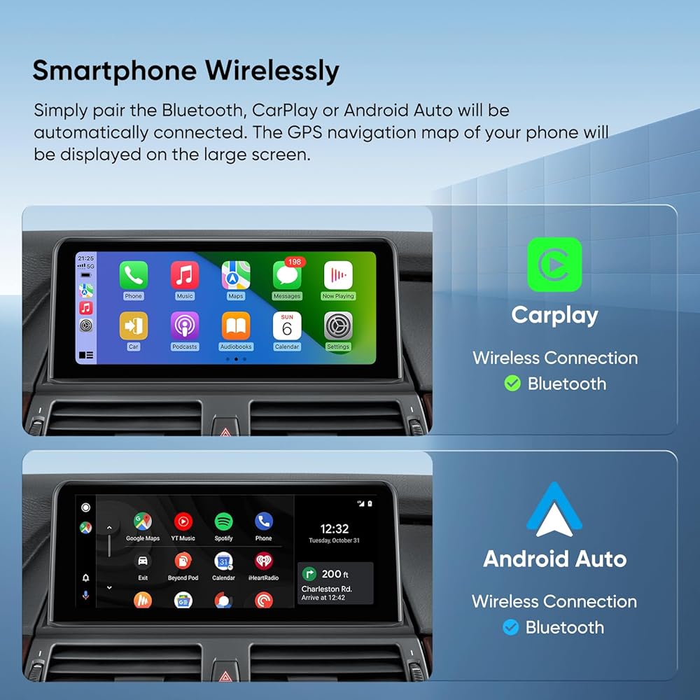 【تكامل مثالي】مصمم خصيصًا لسيارات BMW. لا تتطابق هذه الوحدات مع لوحة القيادة الأصلية للحصول على مظهر متكامل تمامًا فحسب، بل توفر أقوى تجربة لاسلكية CarPlay / Android Auto وشاشة تعمل باللمس لسيارتك BMW، مما يجعل لوحة القيادة أكثر ذكاءً من أي وقت مضى.