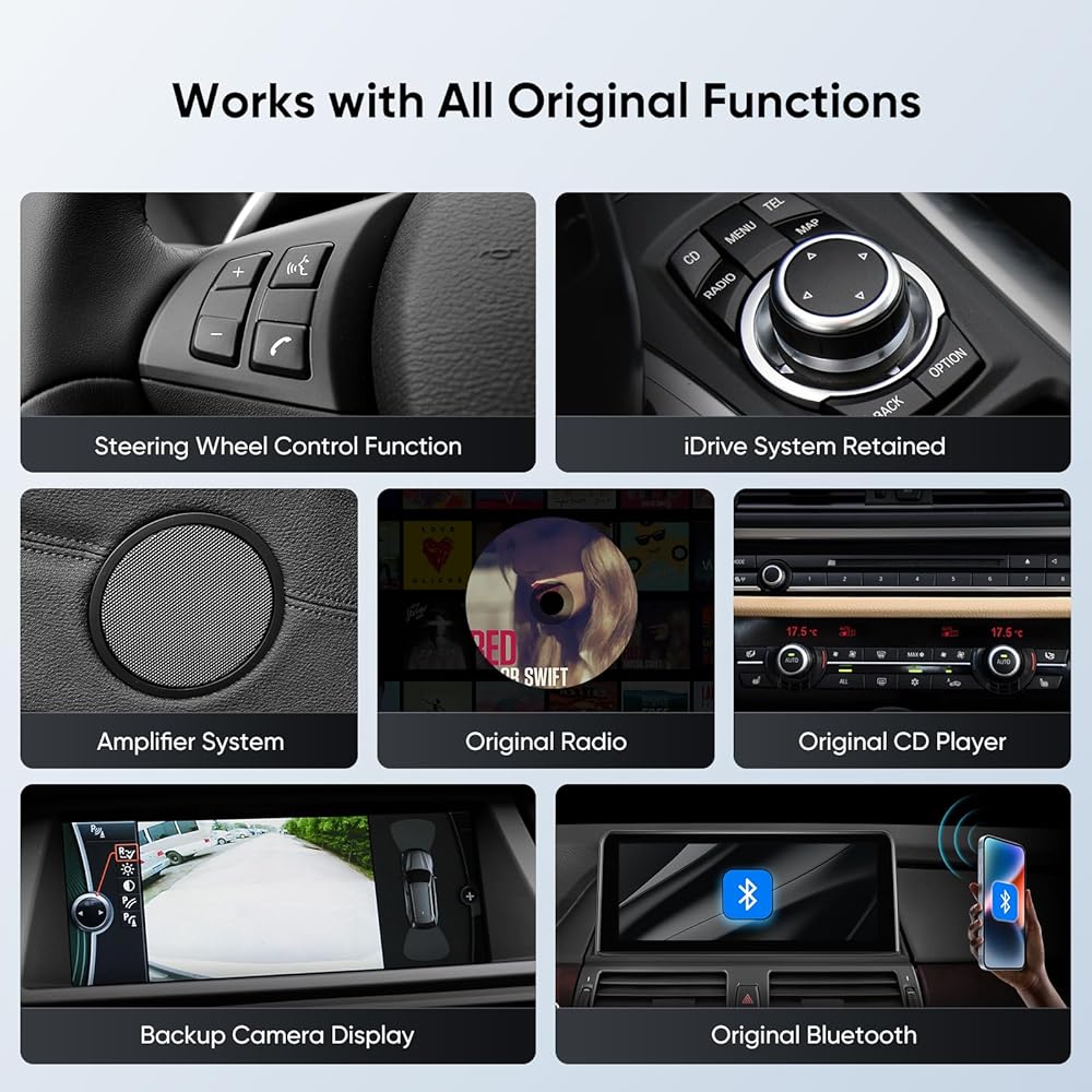 【الاحتفاظ بالوظائف الأصلية】الآن استبدل شاشة سيارتك، وقم بتوصيلها بمحول سرج الأسلاك. لديك شاشة لمس عالية الدقة 10.25 لتشغيل رابط الهاتف الذكي. تعمل مع جميع الوظائف الأصلية: نظام iDrive، نظام صوت الألياف البصرية الأصلي، أصلي راديو، مشغل أقراص مضغوطة، بلوتوث، شاشة عرض الكاميرا الاحتياطية، وظيفة SWC وما إلى ذلك.