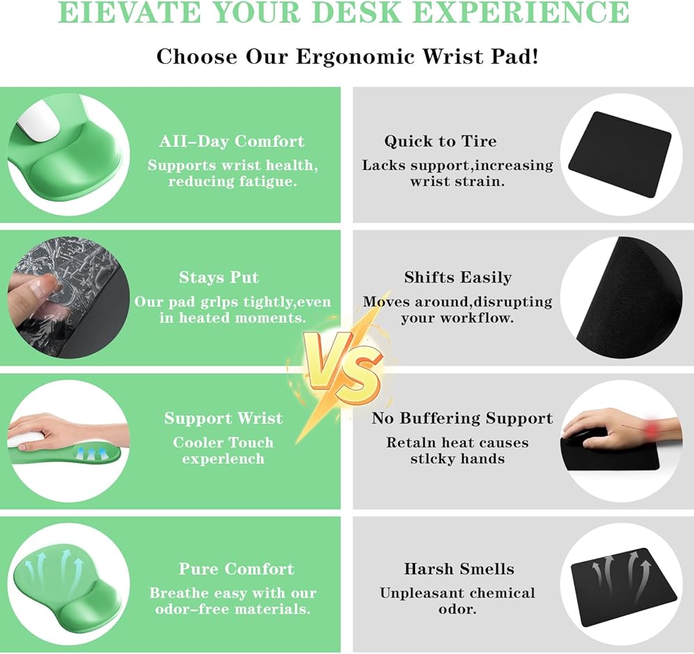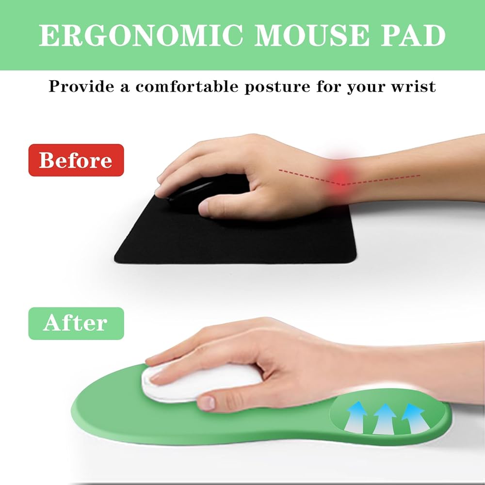 【لوحة ماوس مريحة】ترفع لوحة الماوس المريحة المعصم إلى زاوية مريحة وهي مصممة لتناسب بدقة الانحناءات الطبيعية للمعصم واليد من أجل بيئة مريحة مثالية لتقليل ضغط المعصم لاستخدام الكمبيوتر على المدى الطويل.