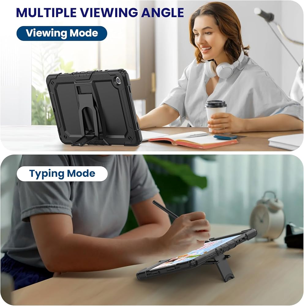 مسند قابل للطي: يوفر جراب Samsung Galaxy Tab A9 Plus دعمًا ثابتًا، مع زوايا رؤية/رسم/كتابة. يمكن أن تقوم يديك بأشياء أخرى عند استخدامها، مما يسهل عليك المشاهدة أو الكتابة؛ ويمكنك طي الحامل عند عدم استخدامه.